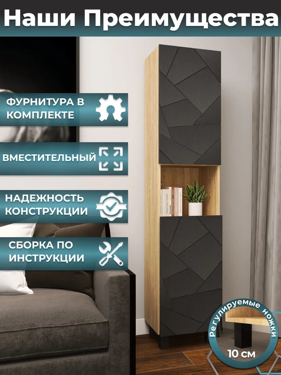 СохранитьШкаф-пенал напольный "Клэо-40", графит под дерево, 180х40х32, с ножками, 5 полок интересное: