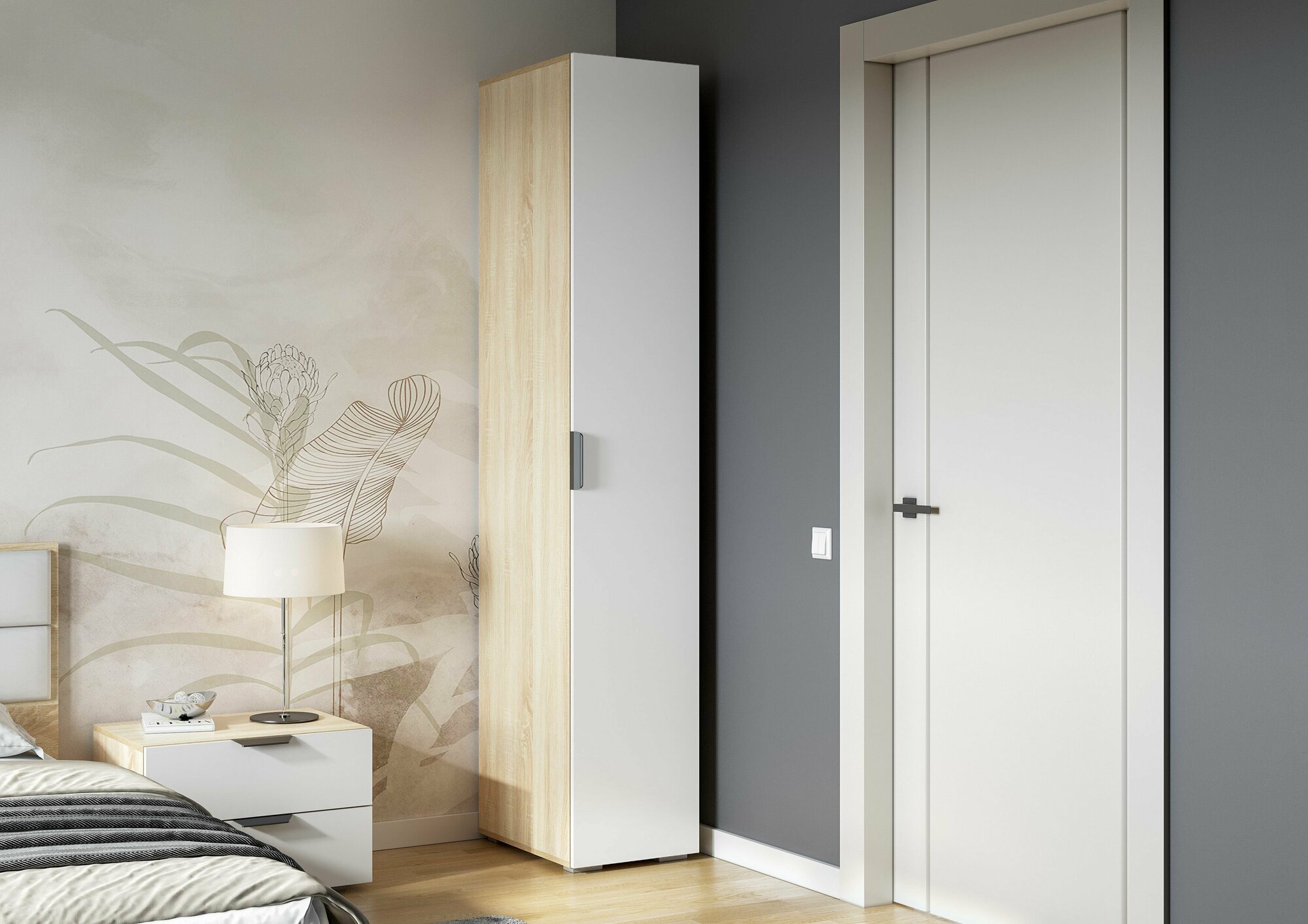 Шкаф для одежды распашной Нонтон Луас, 120 см, 7 полок и штанга, белый глянец