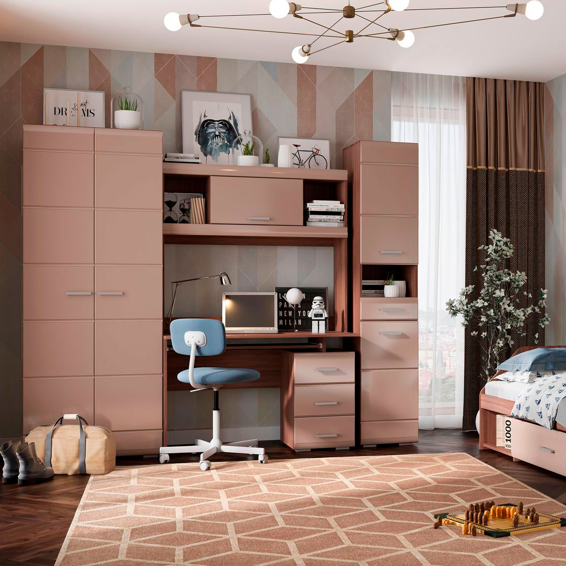 Пенал с ящиком «Симба» (Шимо тёмный/Кофе с молоком глянец) 40х57х200