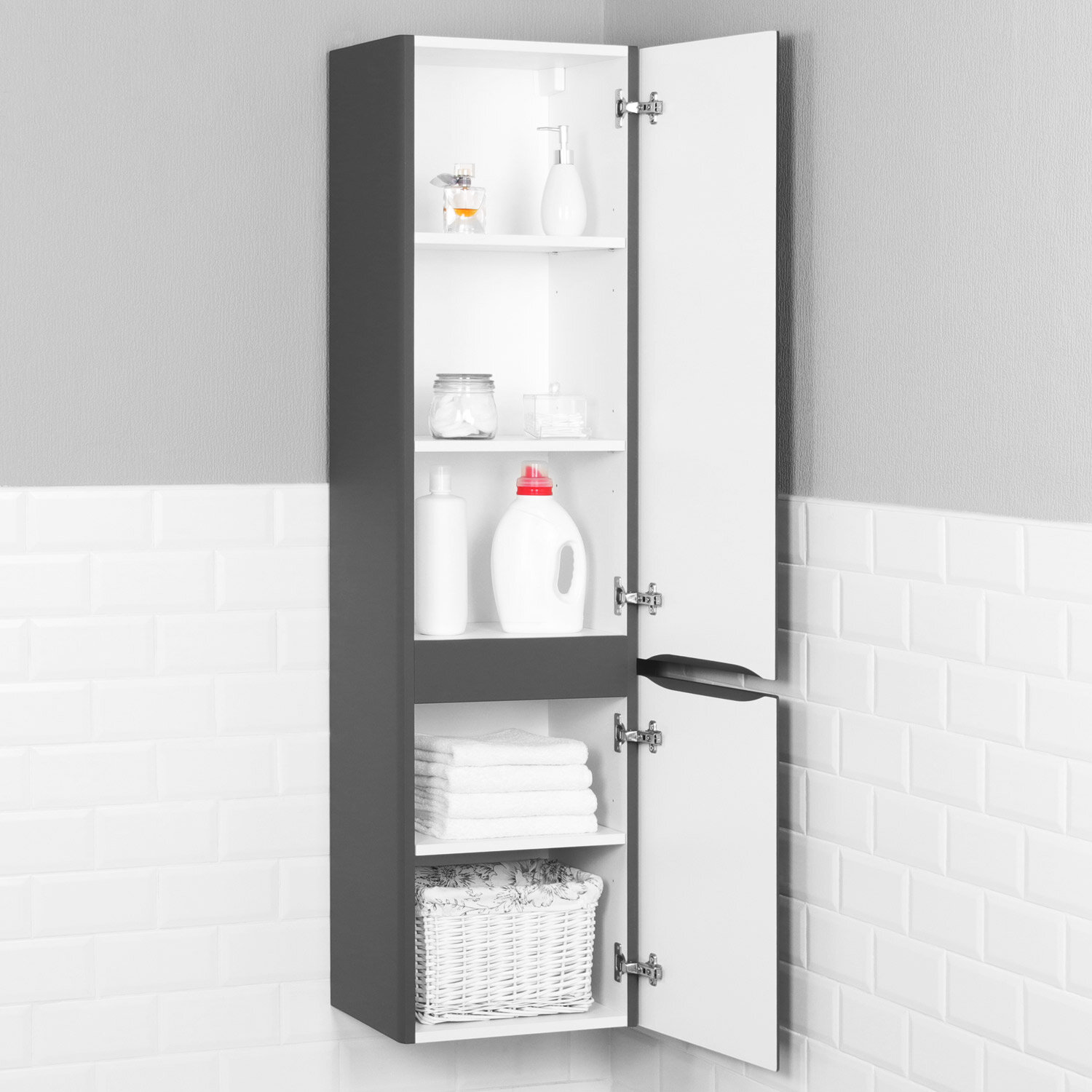 Шкаф пенал для ванной Roberto 40 400х350х1550 графит правый навесной интересное: