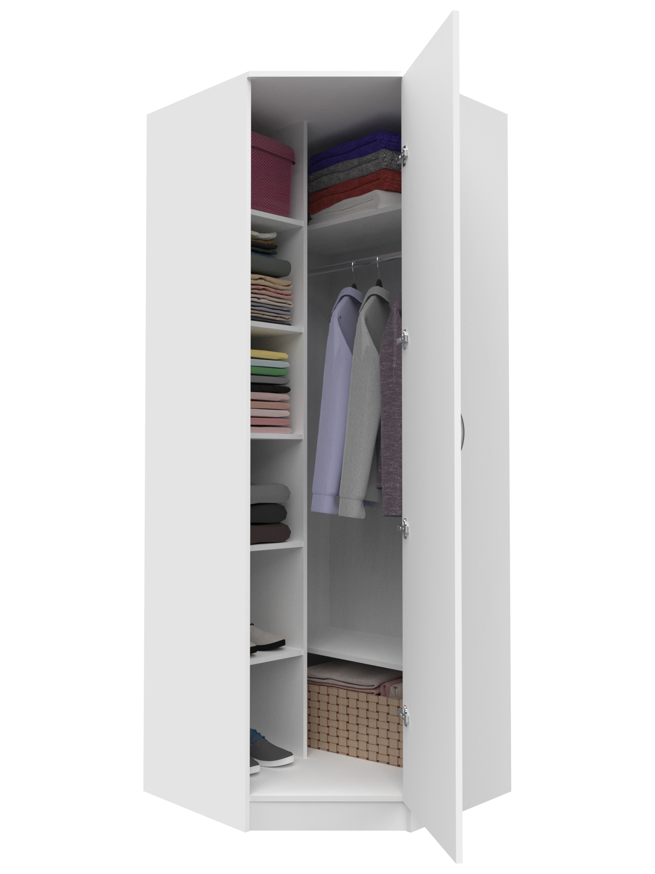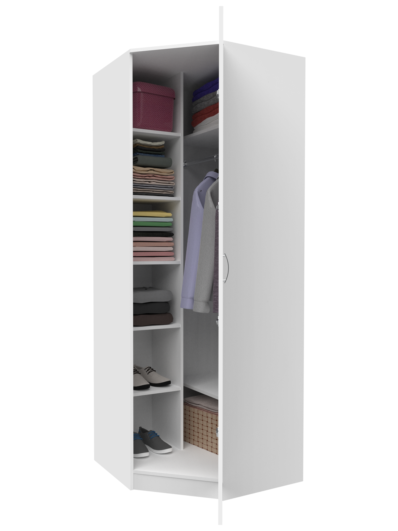 Купить Шкаф угловой распашной Анри-1 с 8 полками и штангой для вешалок, белый