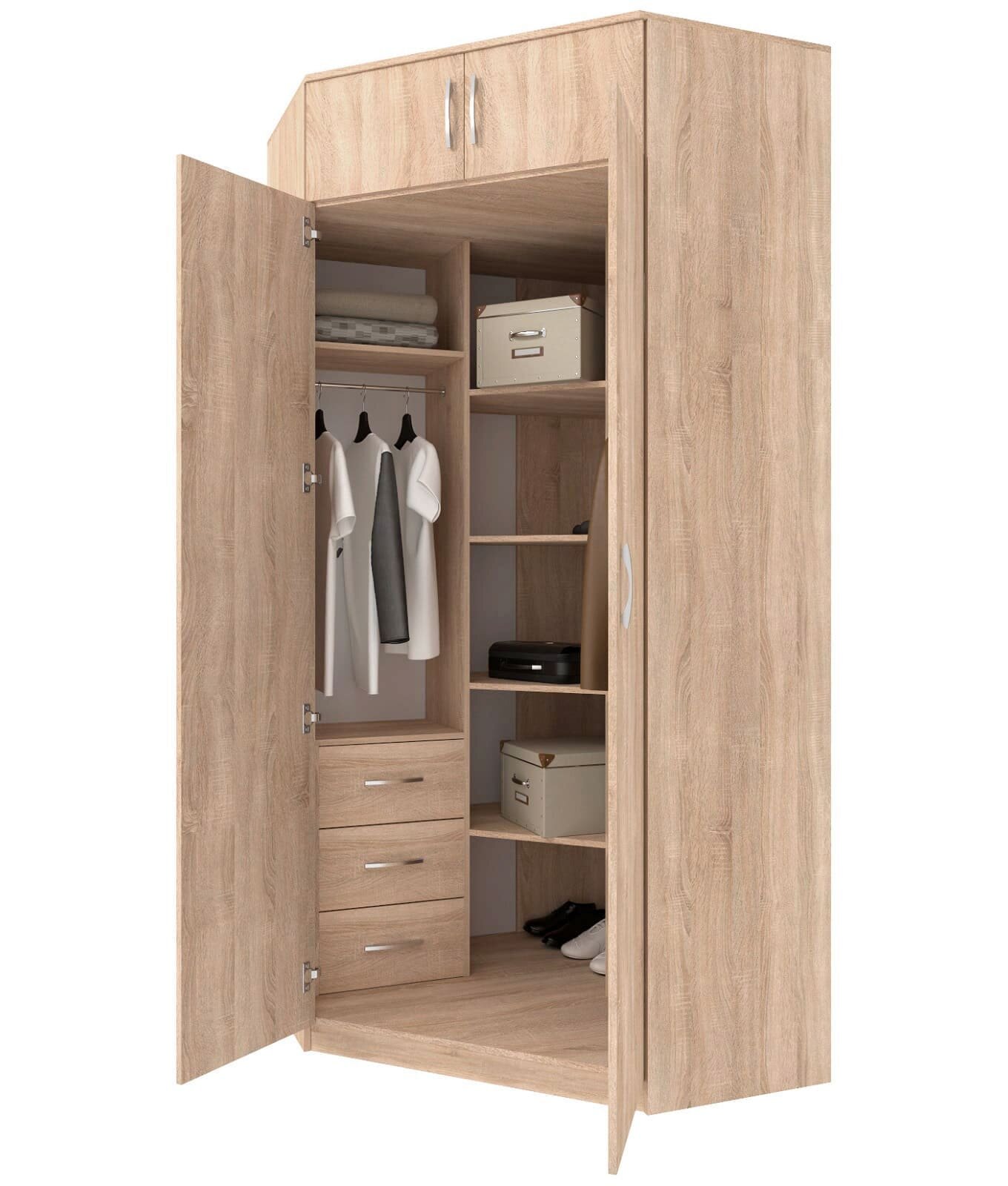 Купить Шкаф угловой распашной Анри-15 с антресолью, 3 ящиками, 7 полками и 2 штангами для вешалок