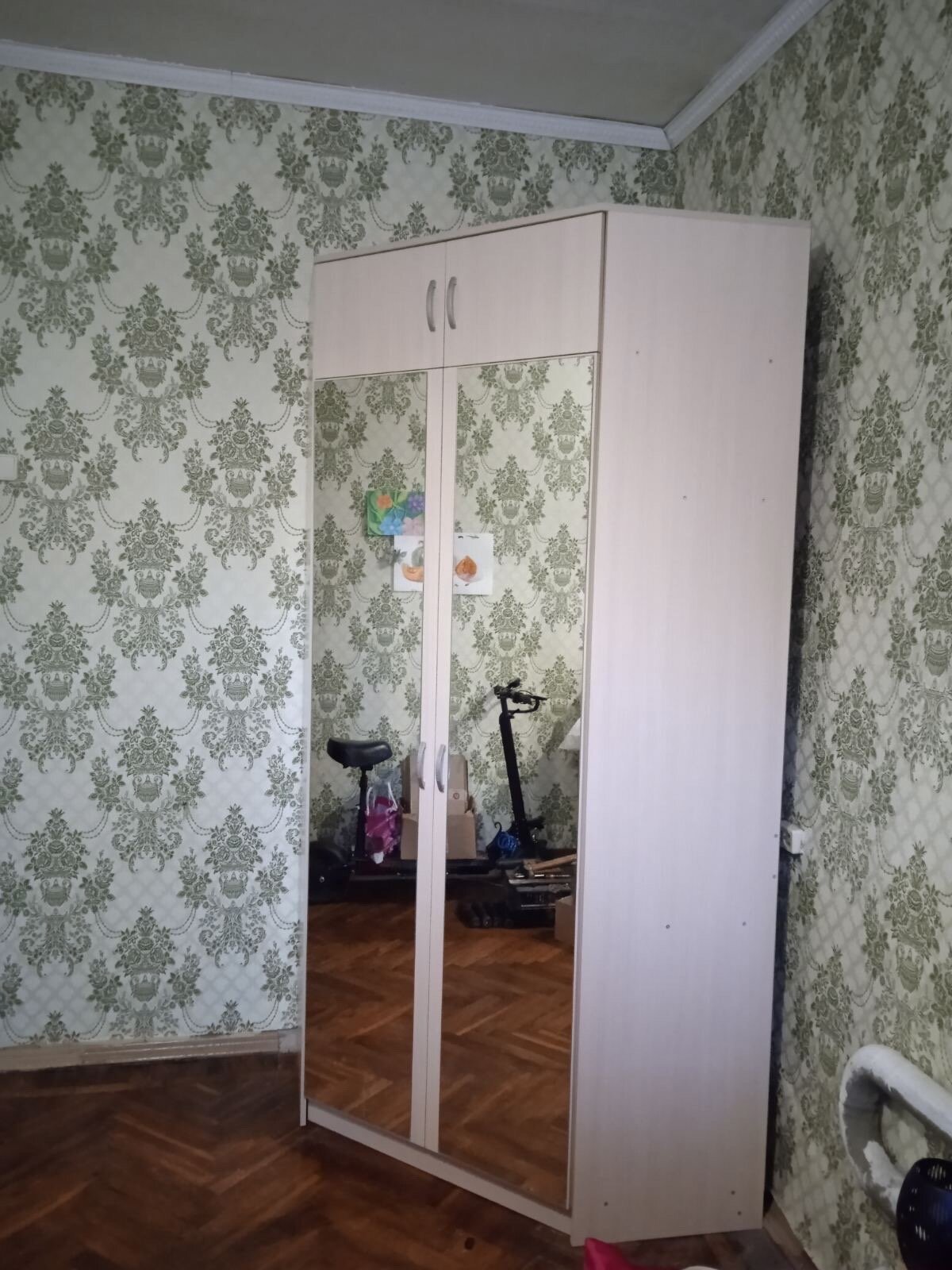 Шкаф угловой распашной Анри-1 с 8 полками и штангой для вешалок
