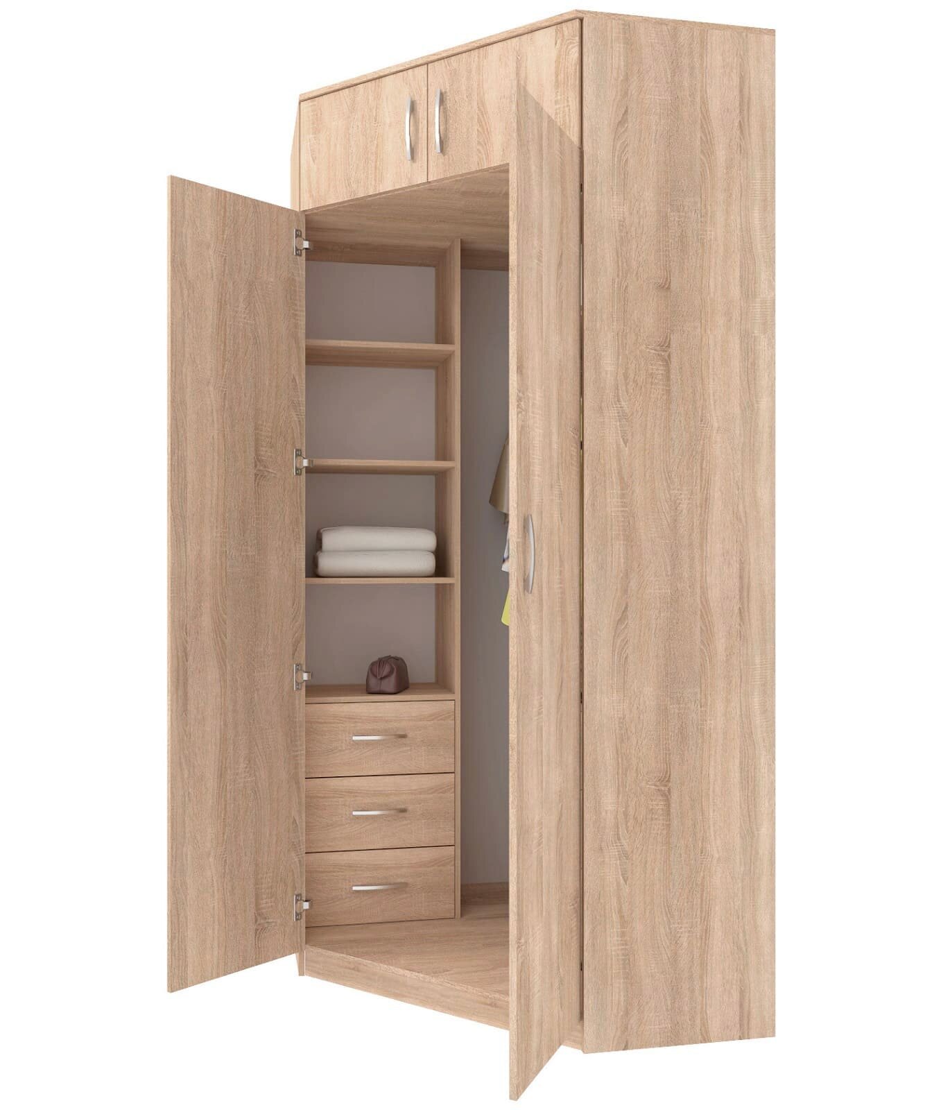 Шкаф угловой распашной Анри-2 с 3 ящиками, 6 полками и штангой для вешалок