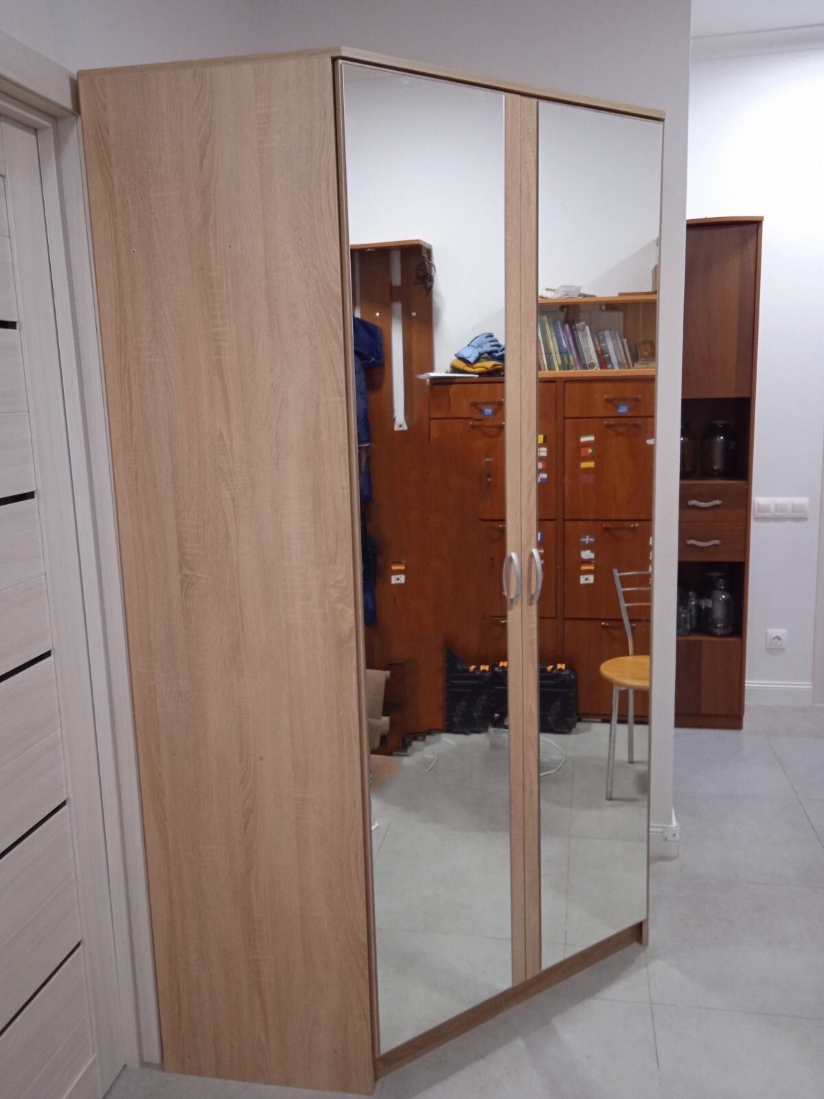 Шкаф угловой распашной Анри-1 с 8 полками и штангой для вешалок