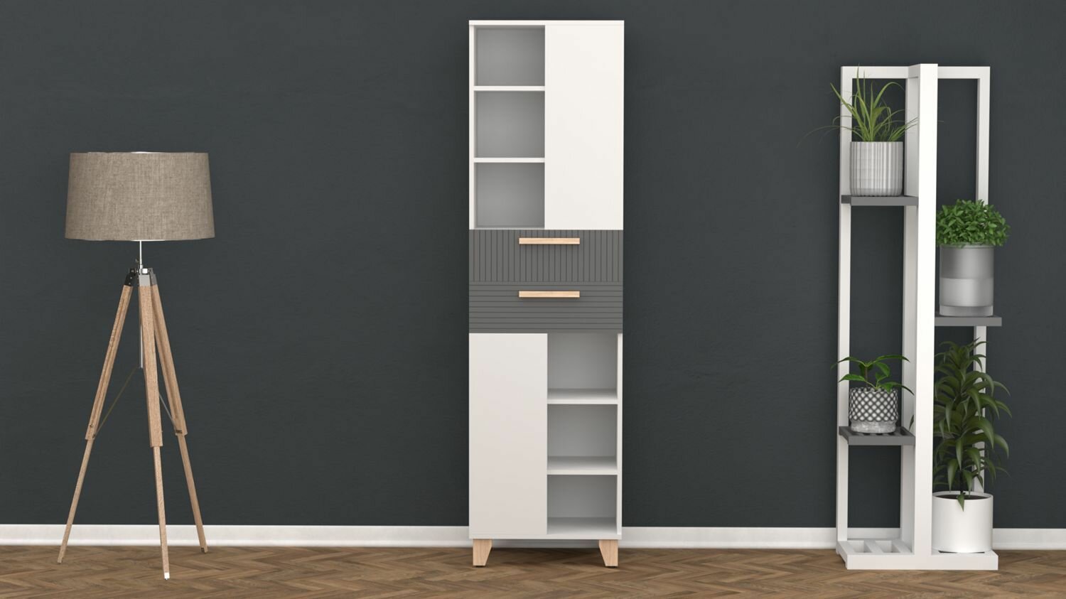 Купить Пенал Копенгаген ЛДСП Белый / МДФ Серый графит (двенадцать стульев Фабрика мебели)