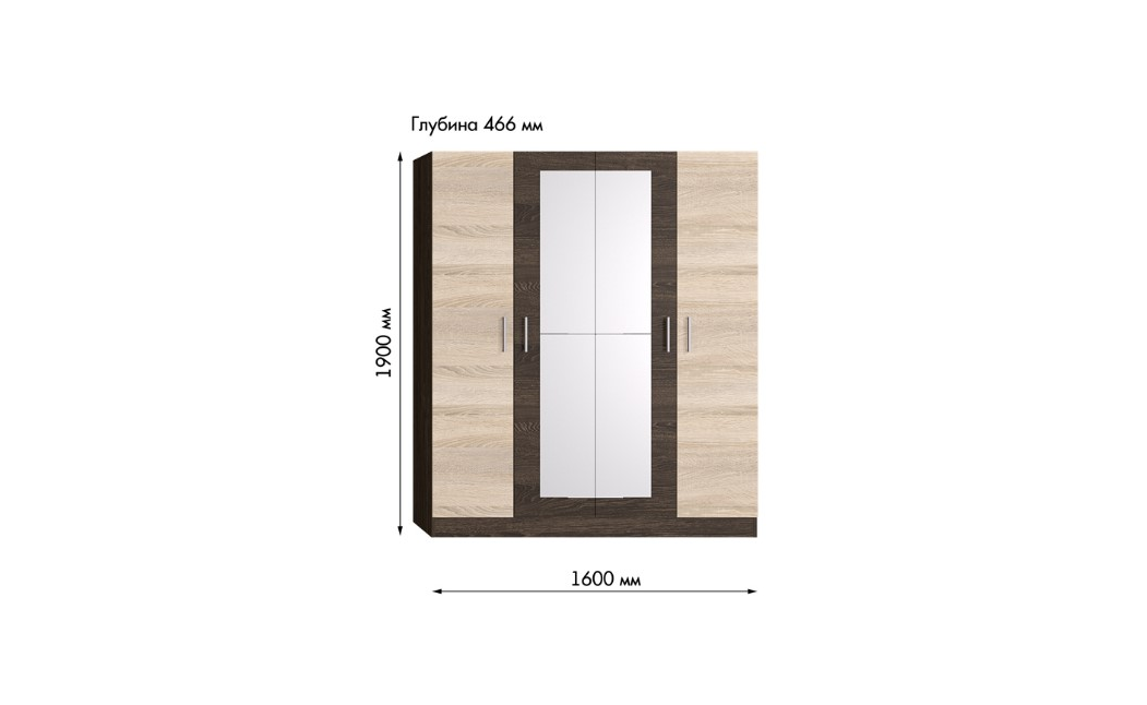 Шкаф Леси 4х-ств. кантер/сонома 1600*1900*446 + зеркало Горизонт интересное:
