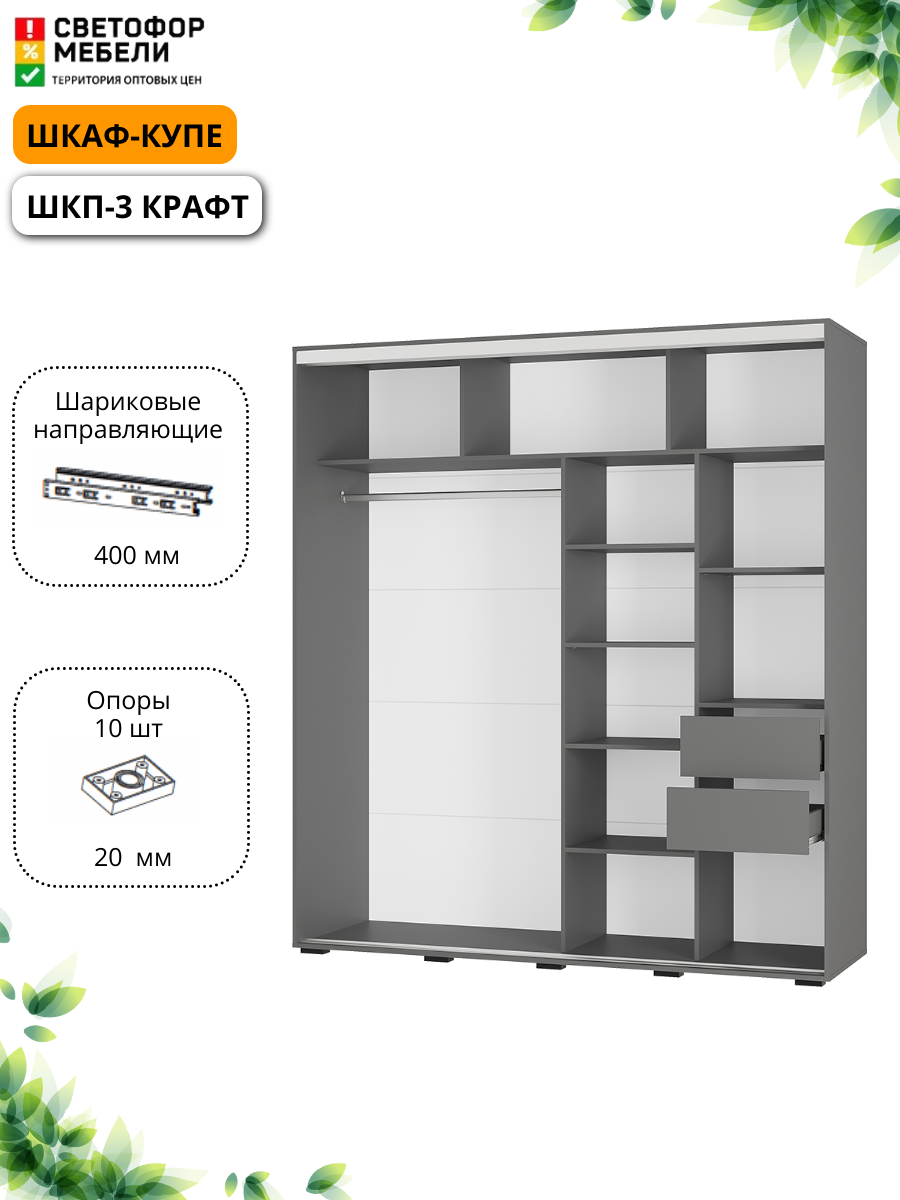 Купить Шкаф-купе Мебельный рай ШКП-3 Крафт, ЛДСП, 196,2 см х 217,6 см х 59,1 см, графит