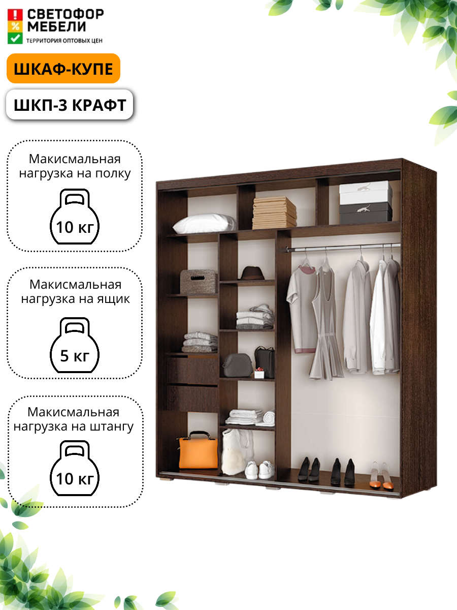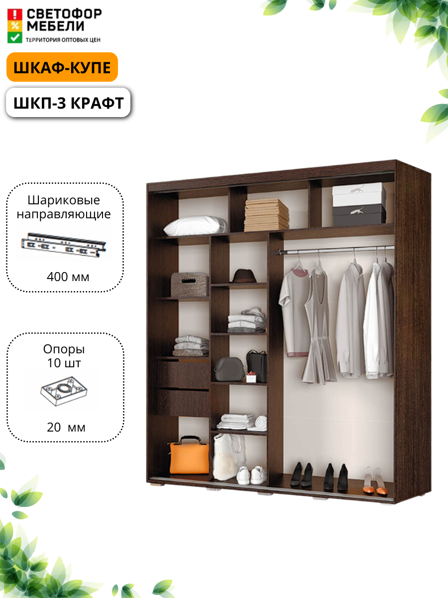 СохранитьШкаф-купе ШКП 3 Крафт Мебельный рай, ЛДСП, 196,2 x 59,1 x 217,6 см, венге интересное: