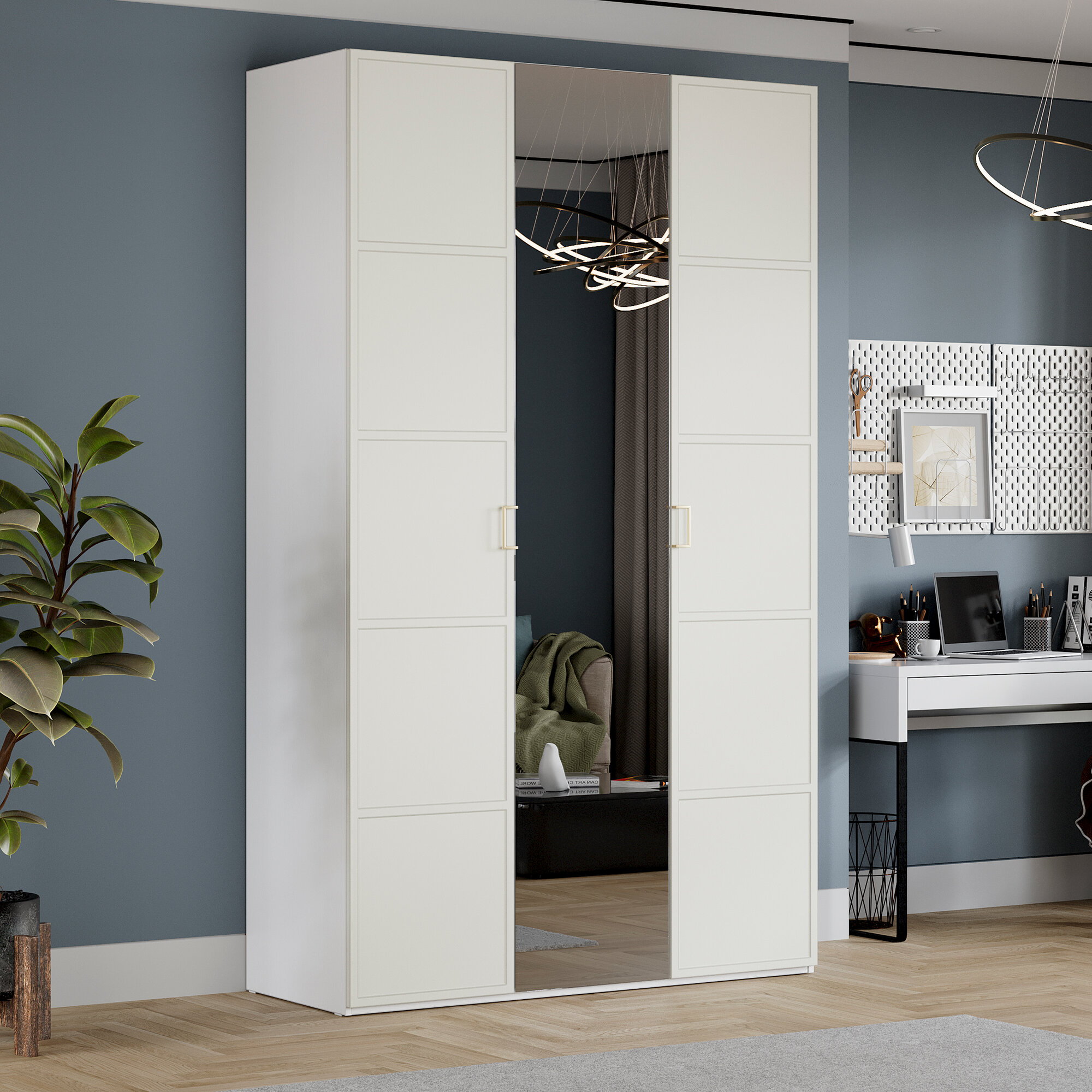 Шкаф для одежды распашной Нонтон Луас, 120 см, 7 полок и штанга, белый глянец