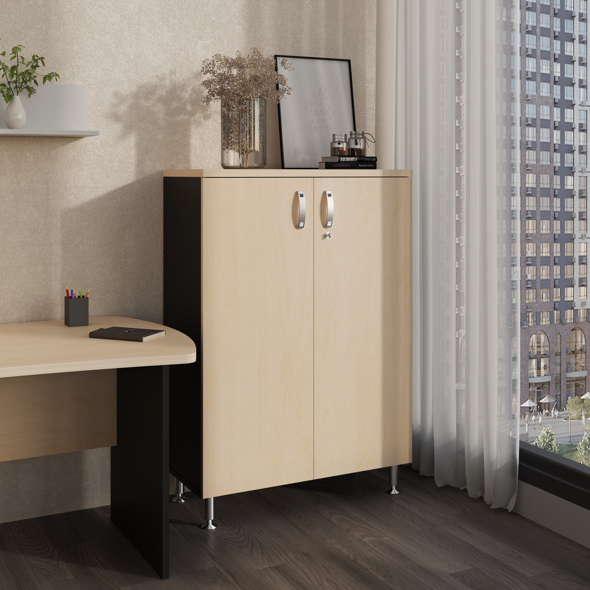 Шкаф двухдверный с замком Берлин ТМ ДЭФО 90x43x129, черно-коричневый / береза интересное: