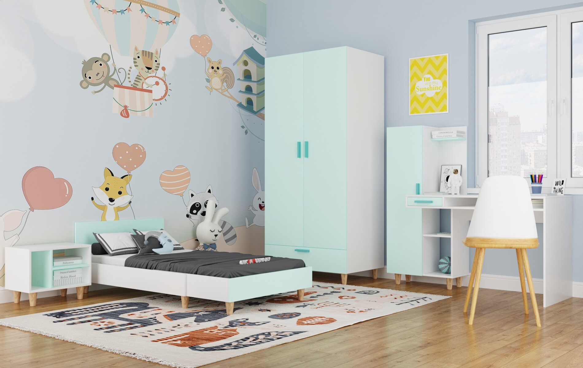 Шкаф ОБСТАНОВКА. РУ Стокгольм на ножках, с ящиком для детской Лазурь