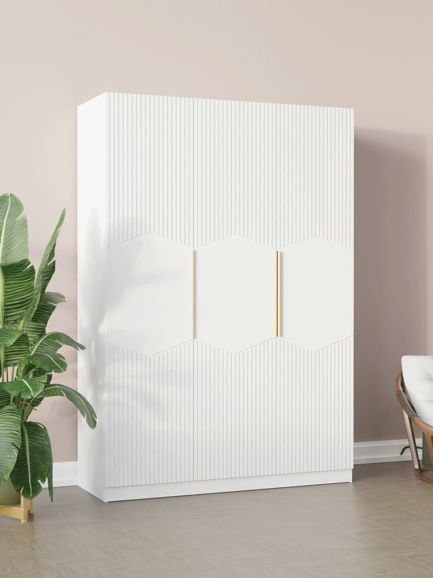 СохранитьLAERA Шкаф для одежды трехдверный распашной с полками сити белый интересное: