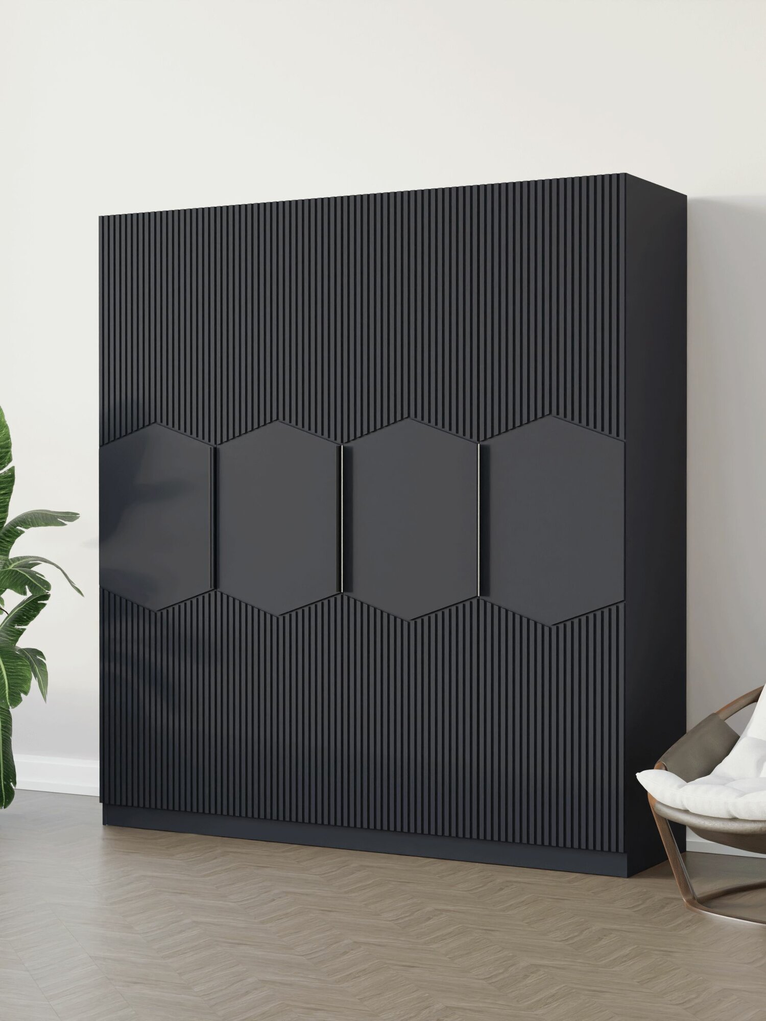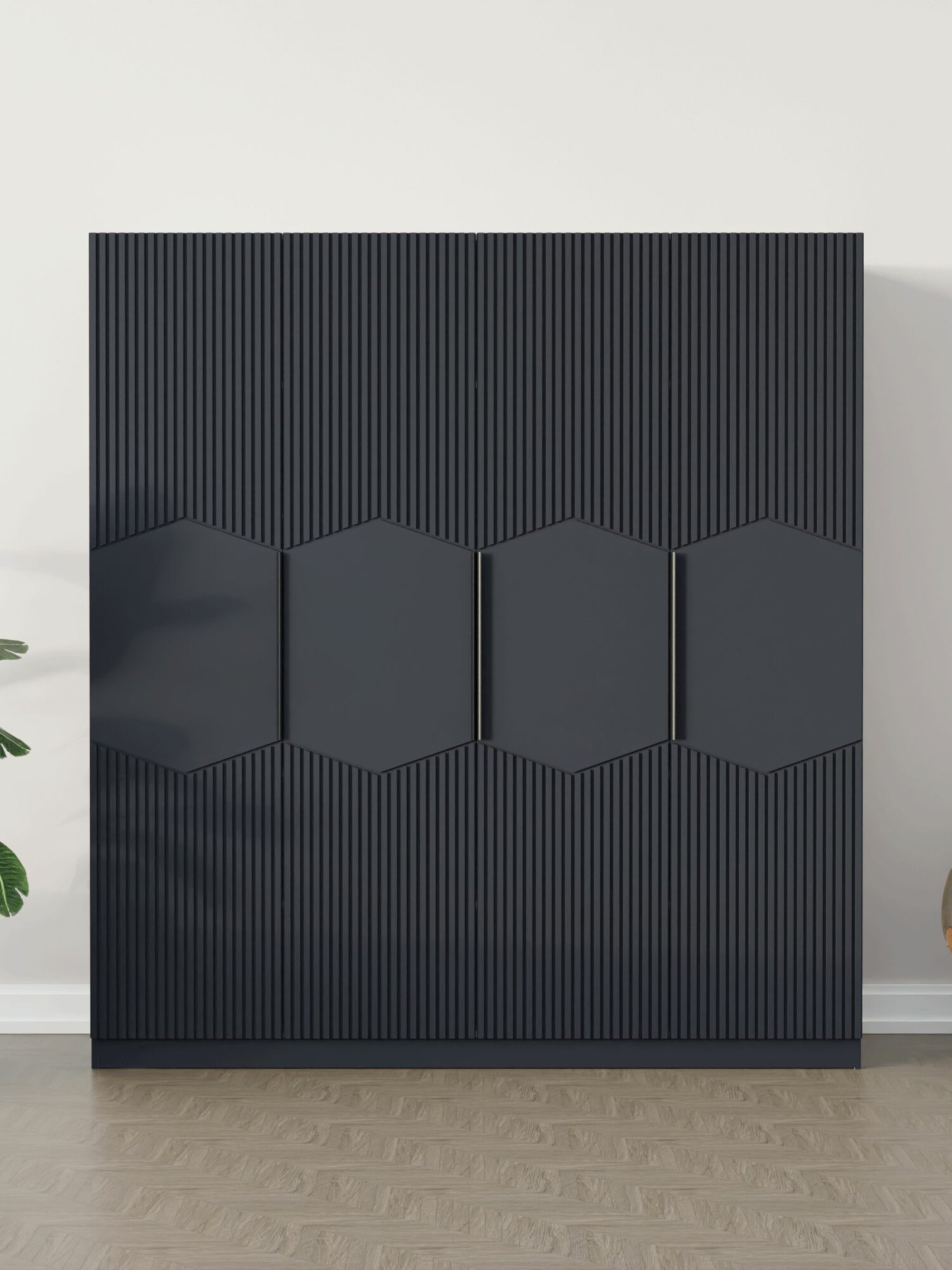 СохранитьLAERA Шкаф для одежды четырехдверный распашной с полками сити графит интересное: