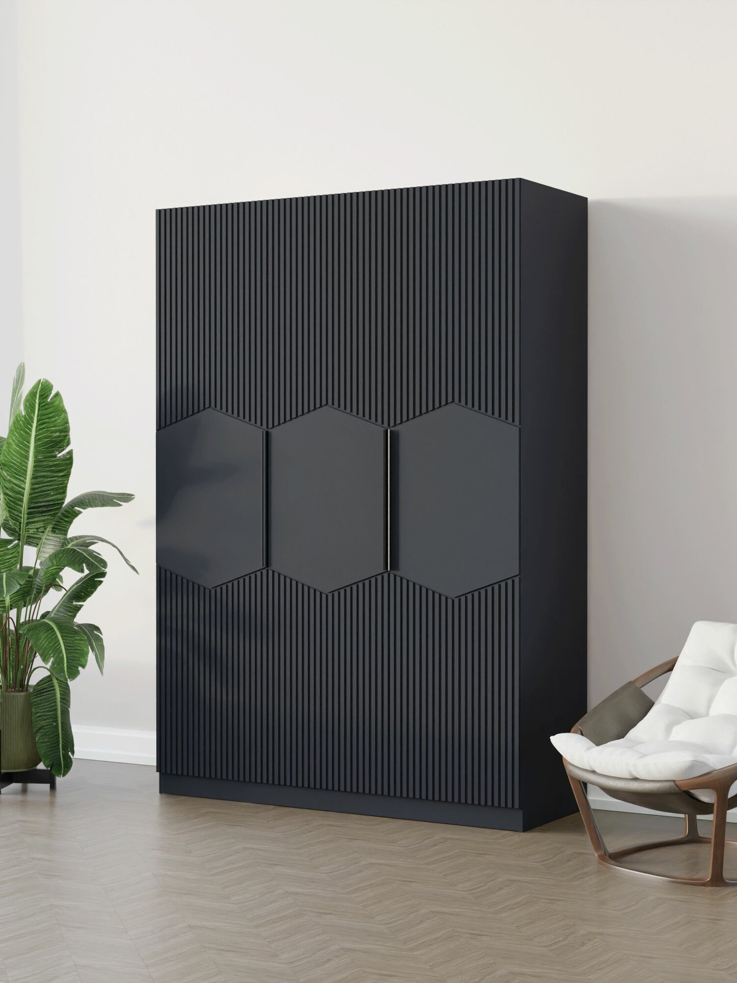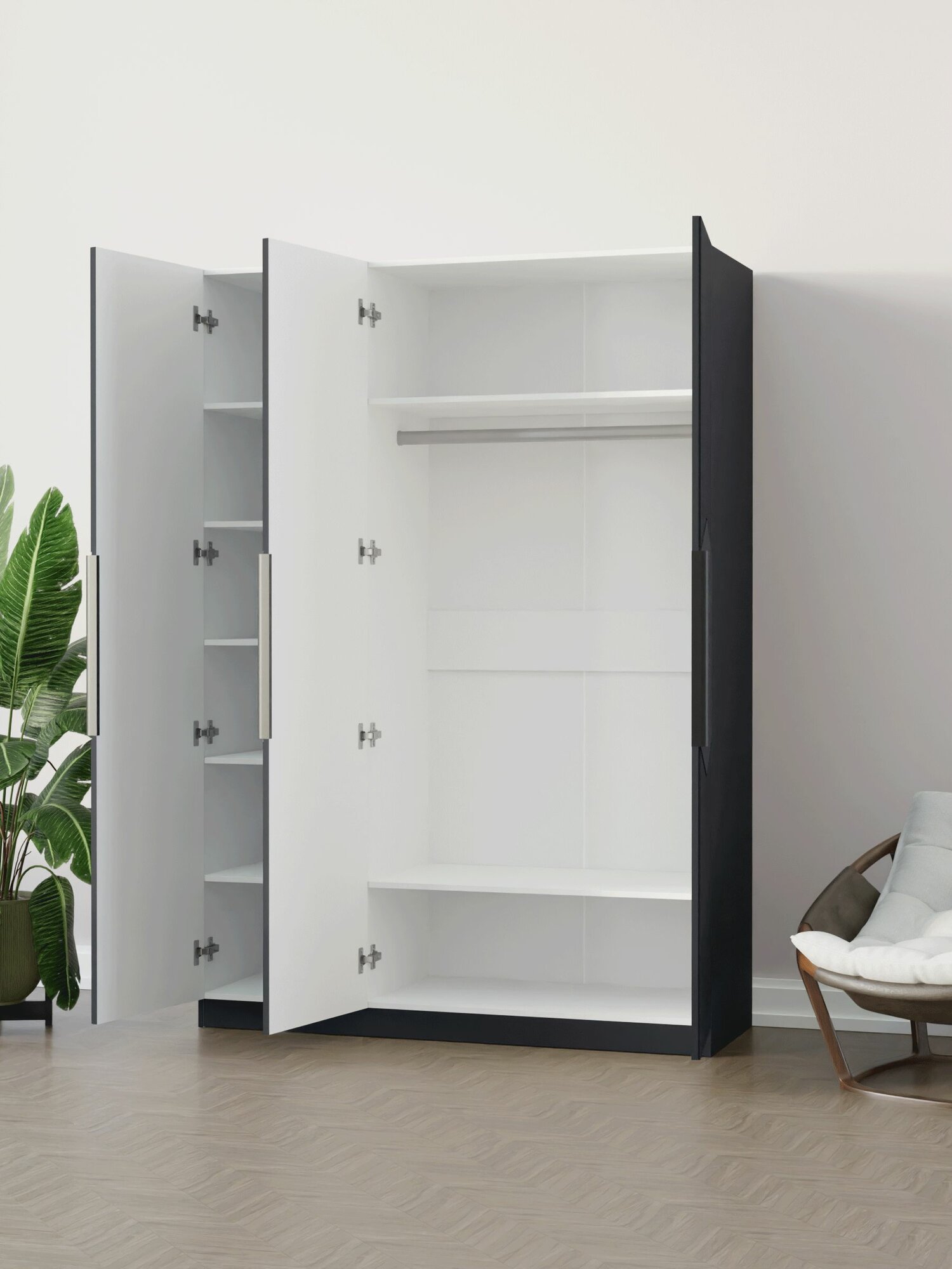 СохранитьLAERA Шкаф для одежды трехдверный распашной с полками сити графит интересное: