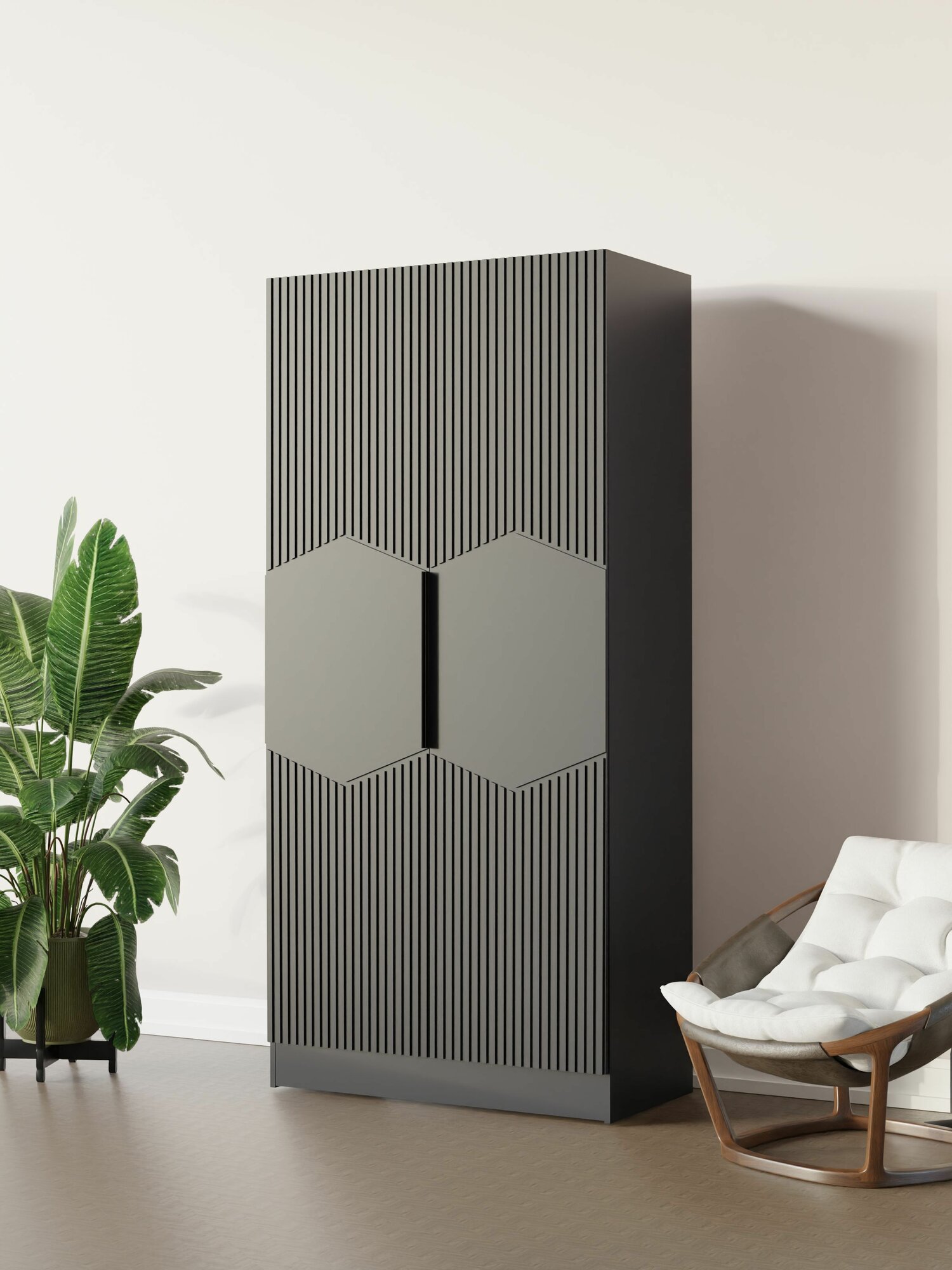 LAERA Шкаф для одежды двухдверный распашной с полками 90 см графит