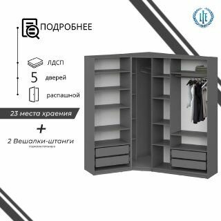 Купить Угловой шкаф распашной для одежды графит серый Лувр, модульный, с 4-мя выдвижными ящиками и 17-ю полками