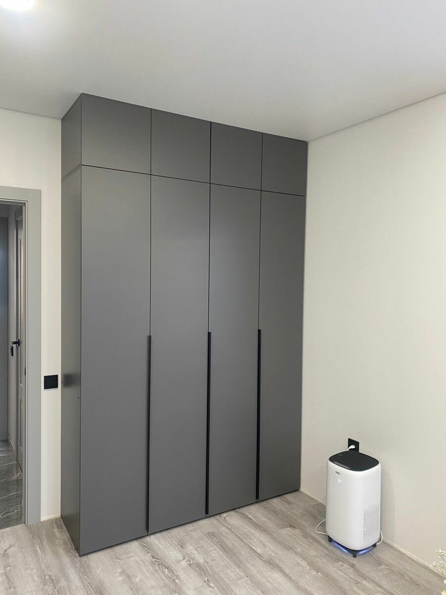 СохранитьШкаф распашной для одежды Лувр графит серый, 4-х дверный, с доводчиками, полками, штангой, выдвижными ящиками и антресолью, 160.1х50.6х260 см интересное: