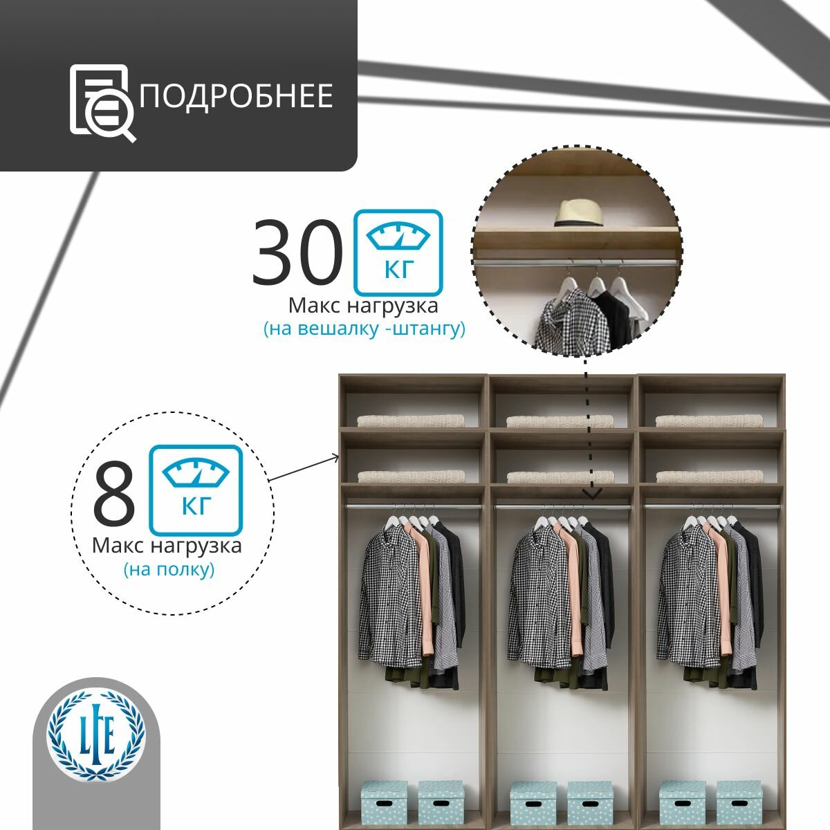 Угловой шкаф распашной для одежды модульный Лувр эндгрейн/меланж(капучино), модульный, с 15-ю полками
