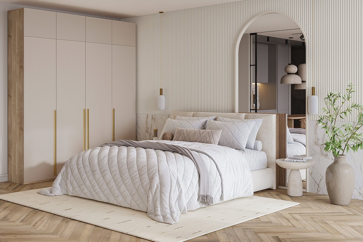 Шкаф распашной МебельЛэнд24 Лорена Хит - 4 с антресолью Кашемир 210x60x280 бежевый для одежды четырехдверный