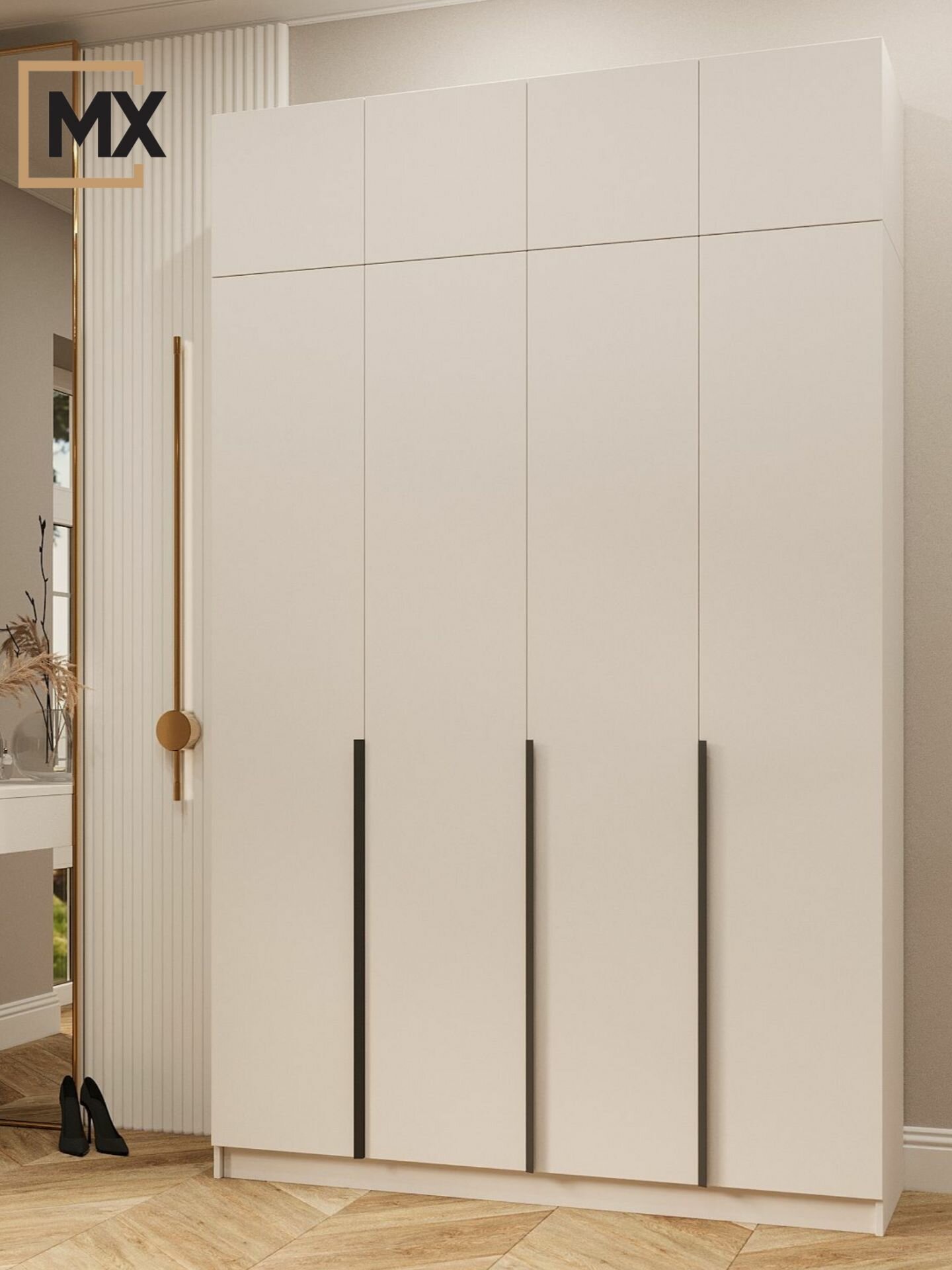 Шкаф для одежды распашной Нонтон Луас, 120 см, 7 полок и штанга, белый глянец