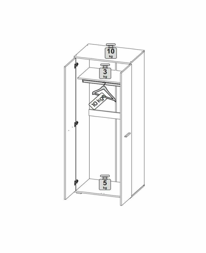 Шкаф для одежды с антресолью, FUN ШК-1, Белый, 69х220х50,6 см (ШхВхГ)