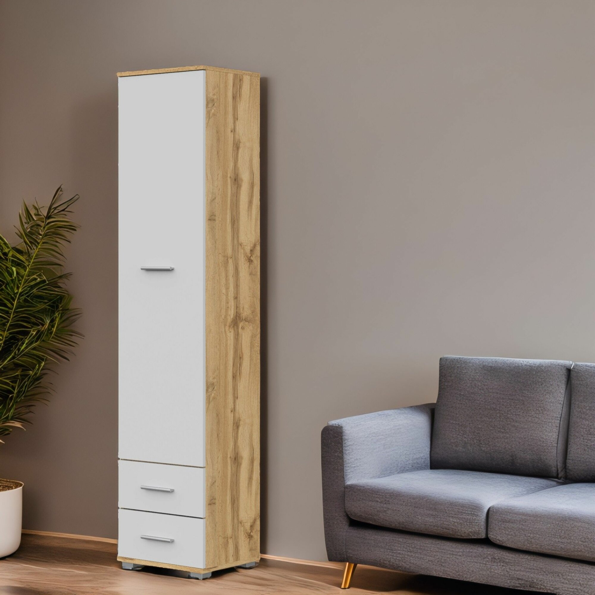 Шкаф, шкаф деревянный FUN СТ-3.180 , Дуб Сонома/Белый, 40х180х34 см (ШхВхГ)