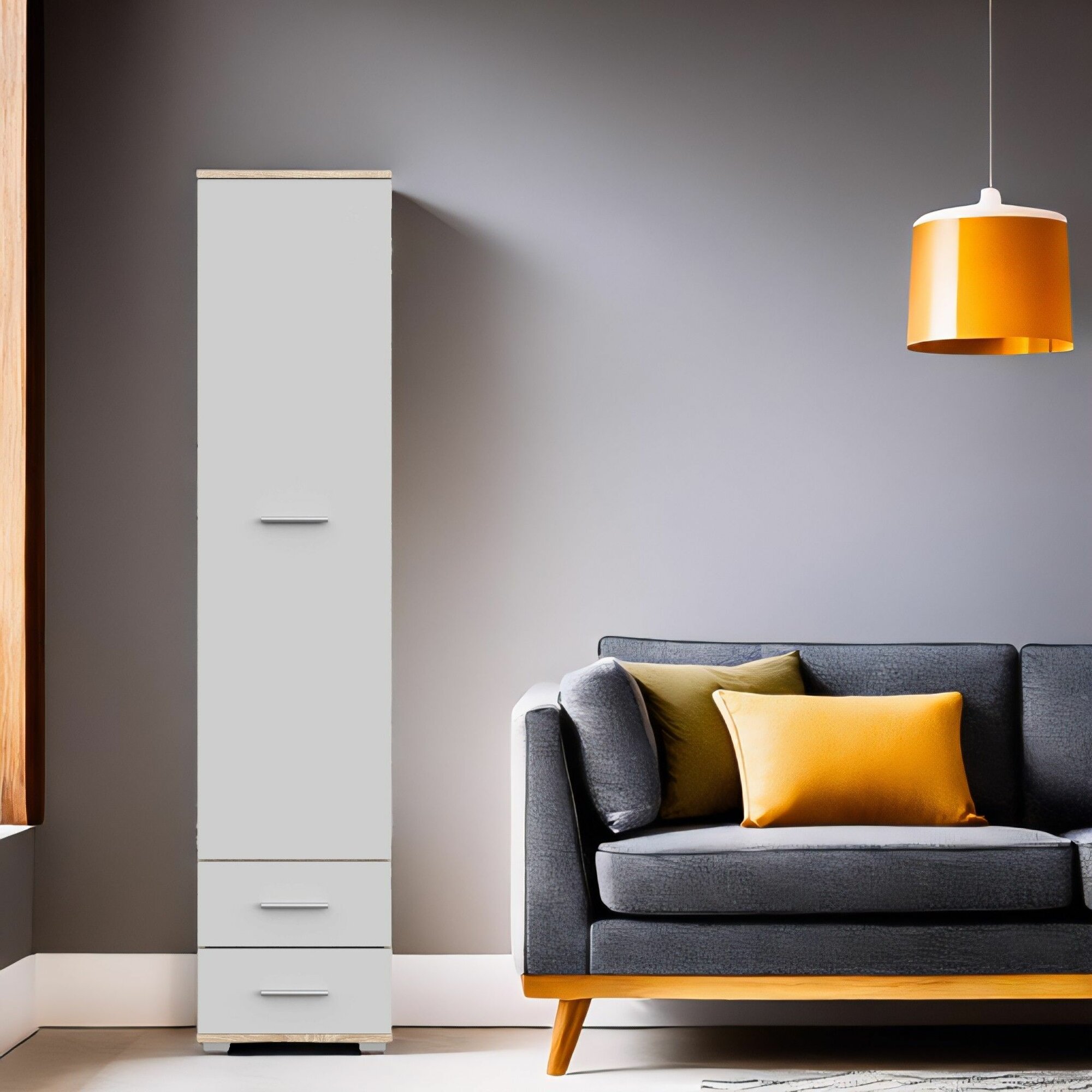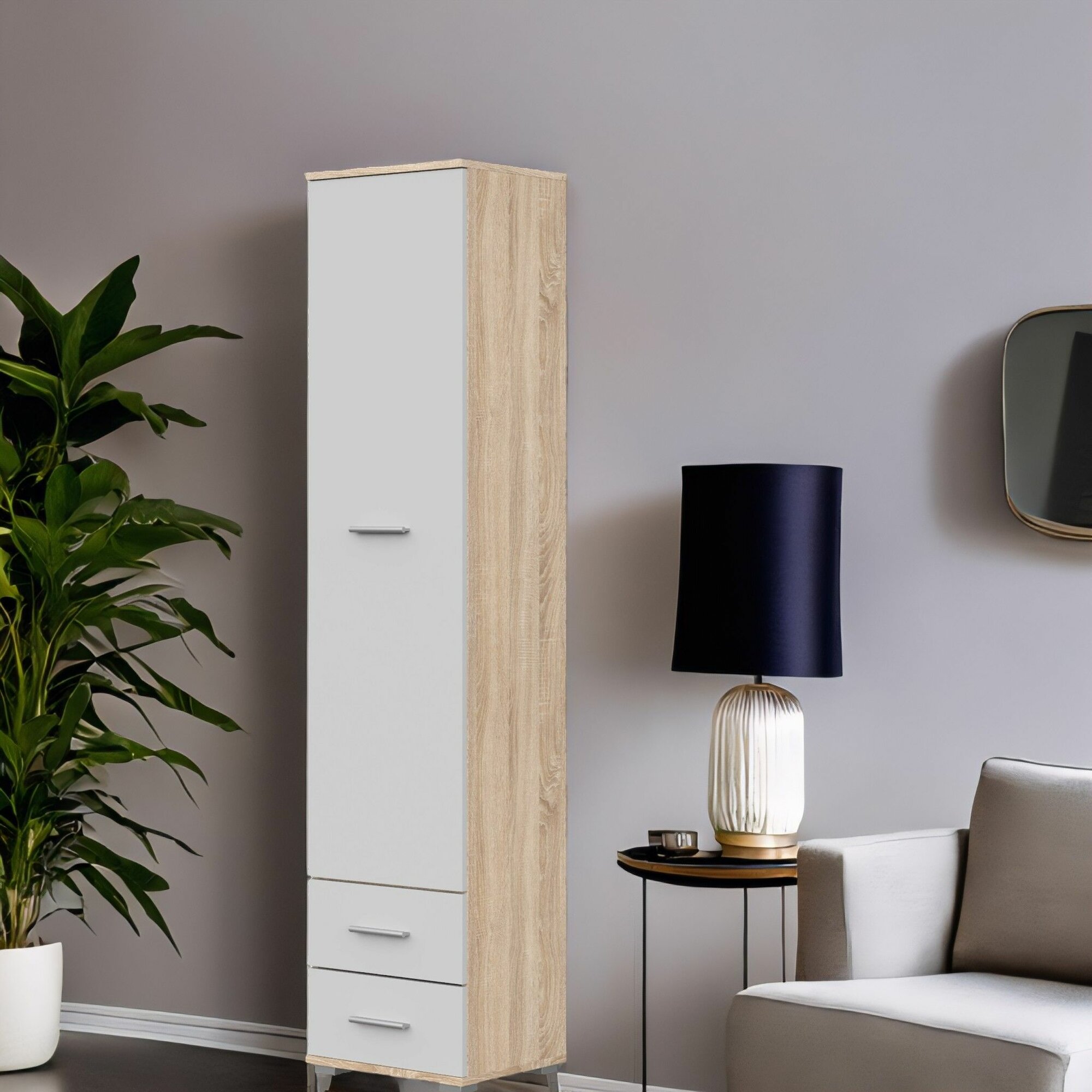Шкаф, шкаф деревянный FUN СТ-3.180 , Дуб Вотан/Белый, 40х180х34 см (ШхВхГ)