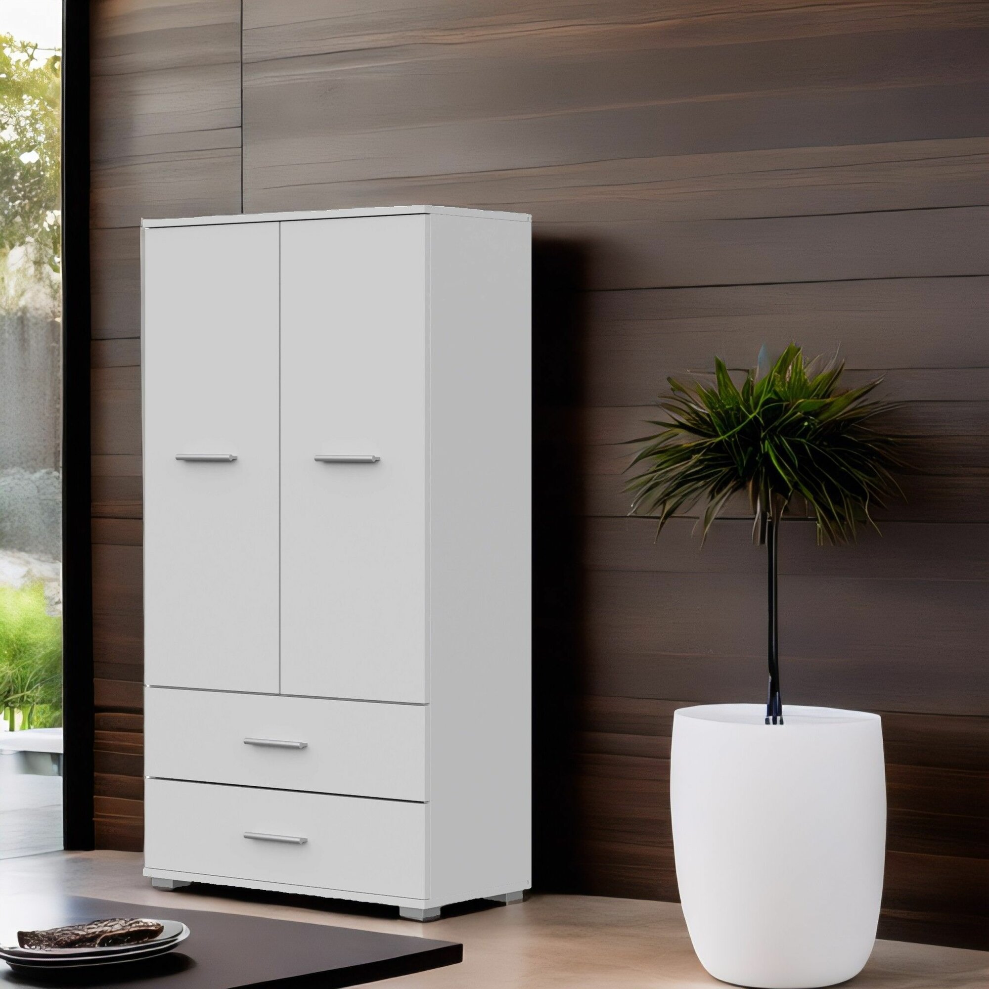 Шкаф для одежды распашной Нонтон Луас, 120 см, 7 полок и штанга, белый глянец
