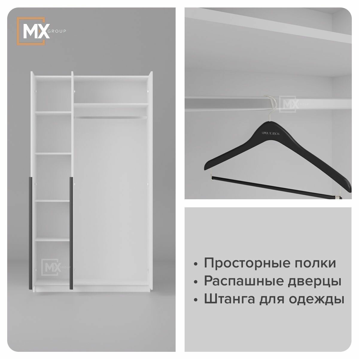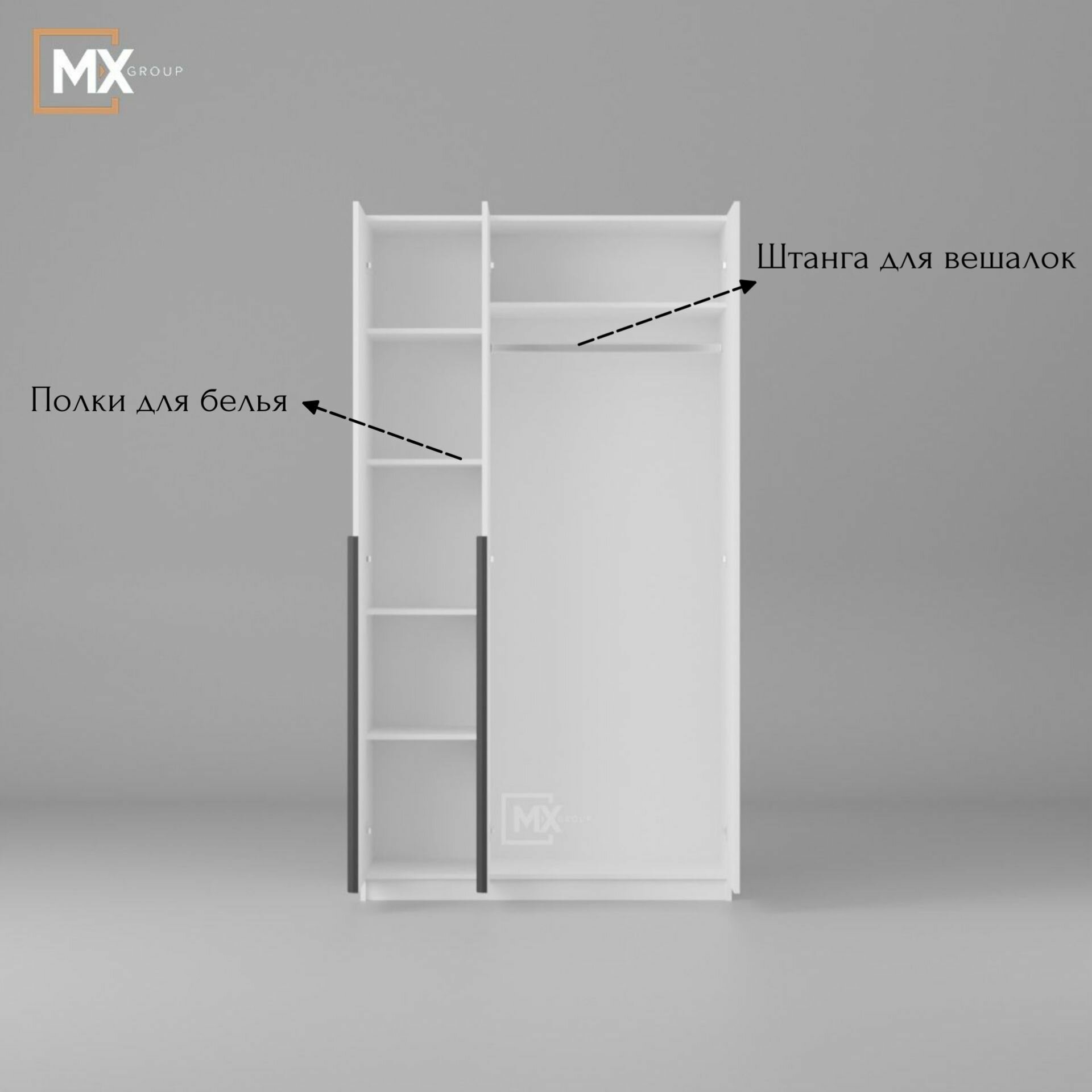 Шкаф для одежды распашной Нонтон Луас, 120 см, 7 полок и штанга, белый глянец