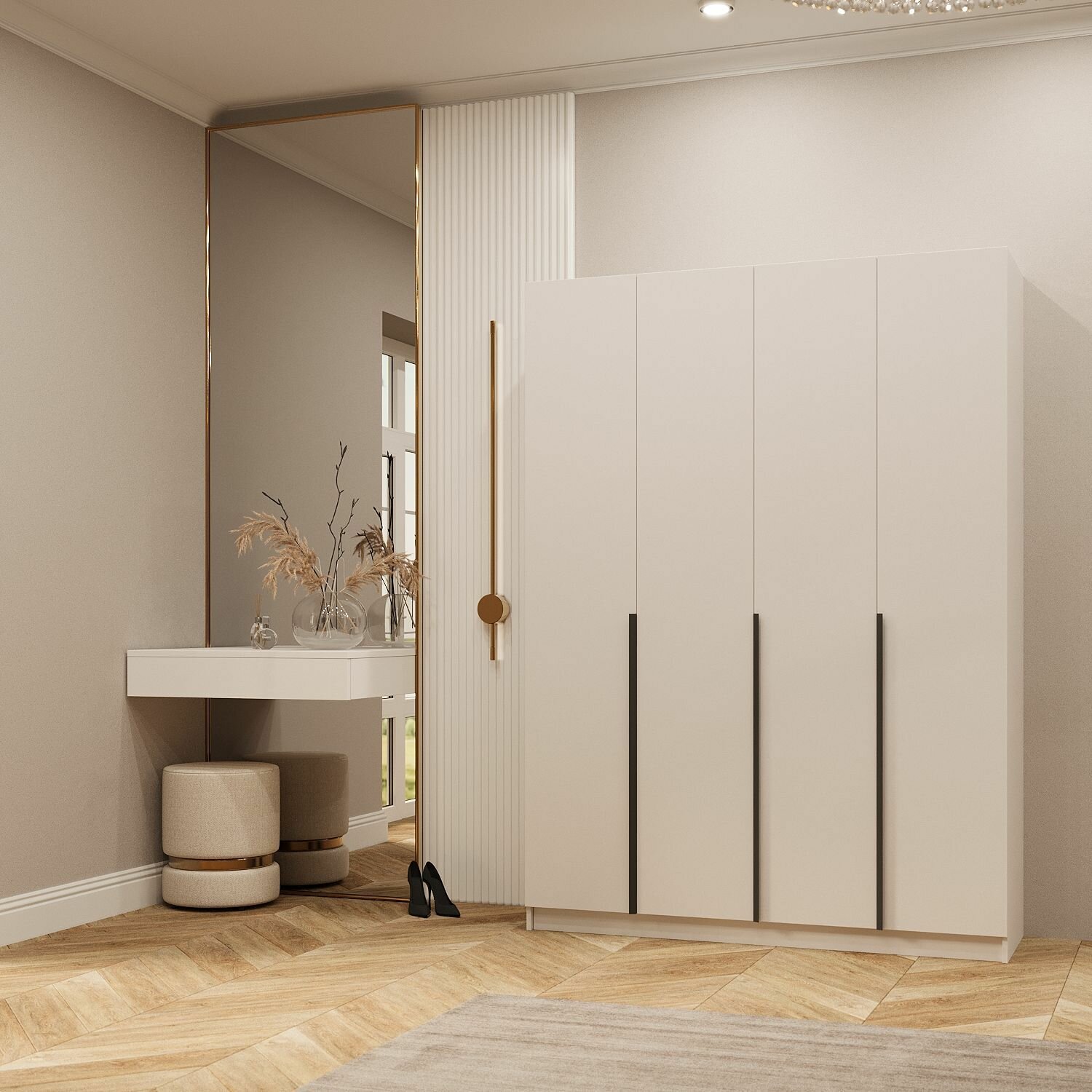 Шкаф для одежды распашной Нонтон Луас, 120 см, 7 полок и штанга, белый глянец