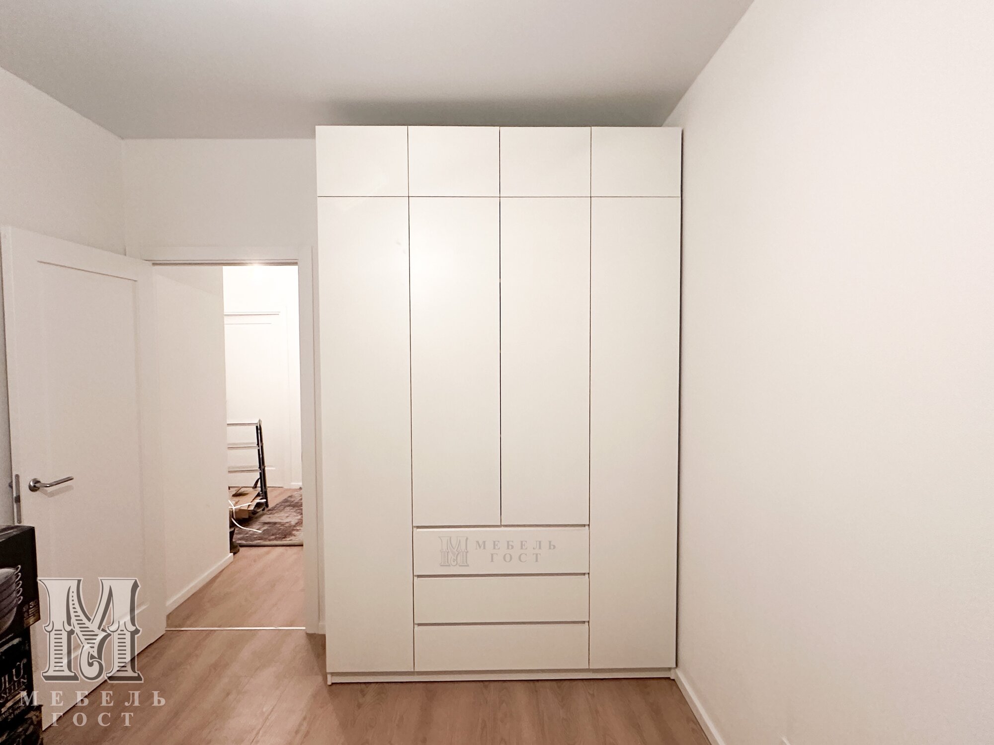 Шкаф для одежды распашной Нонтон Луас, 120 см, 7 полок и штанга, белый глянец