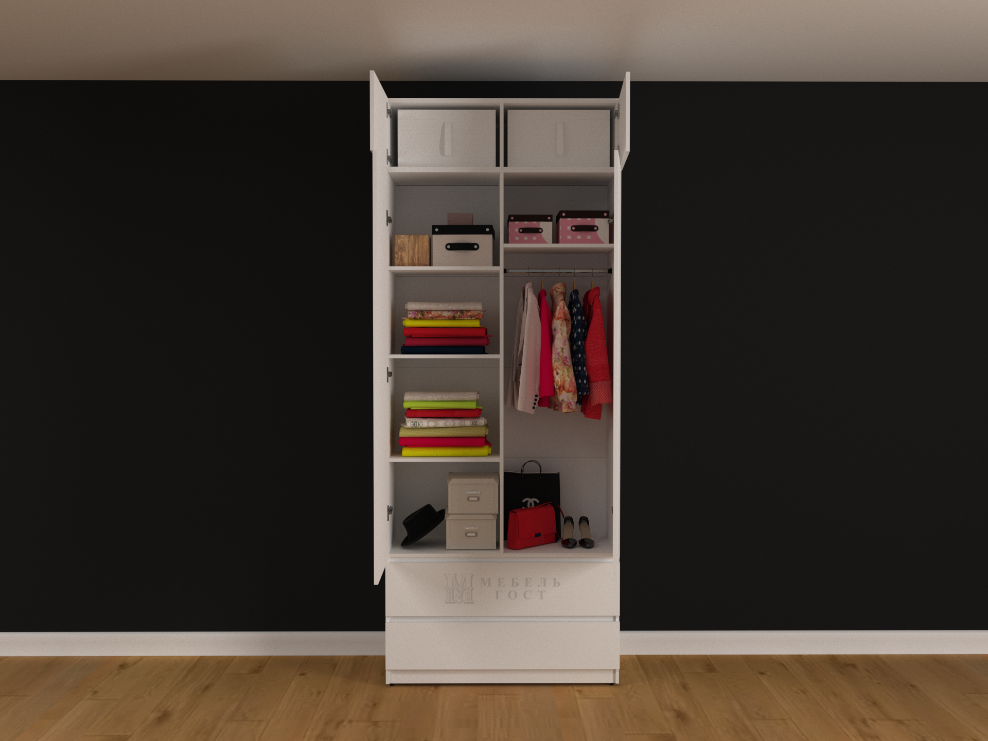 Шкаф распашной Мори-3 Белый для одежды двухдверный 100*250*50 Мегамебель