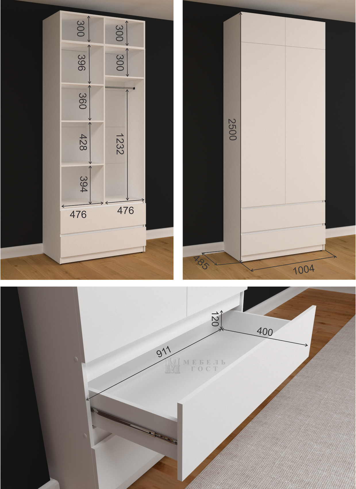 Шкаф для одежды "Мебель ГОСТ", аналог IKEA PAX, ШхВхГ 100x250х50 см Белый интересное: