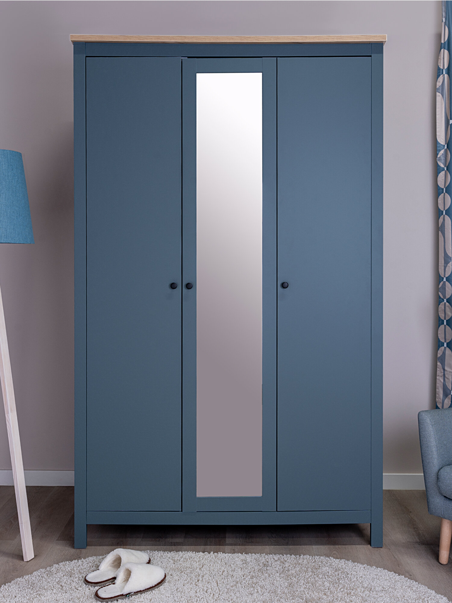 Шкаф распашной ГУД ЛАКК "сага", 3 двери, 132х65х216 см, темно-бирюзовый/ясень интересное: