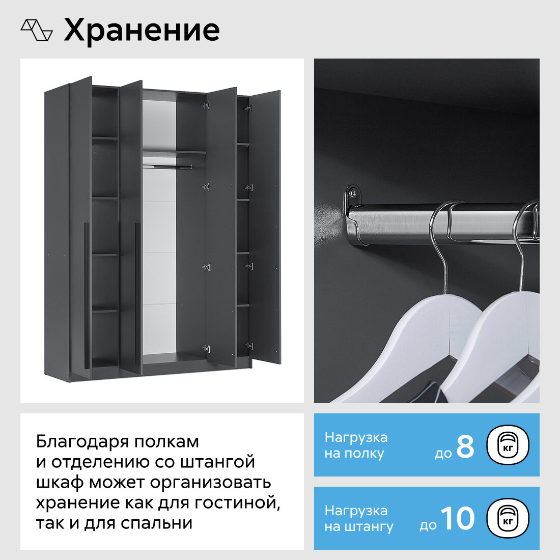 СохранитьШкаф для одежды с полками распашной Нонтон Берген, серый графит, 160х52х220 см интересное: