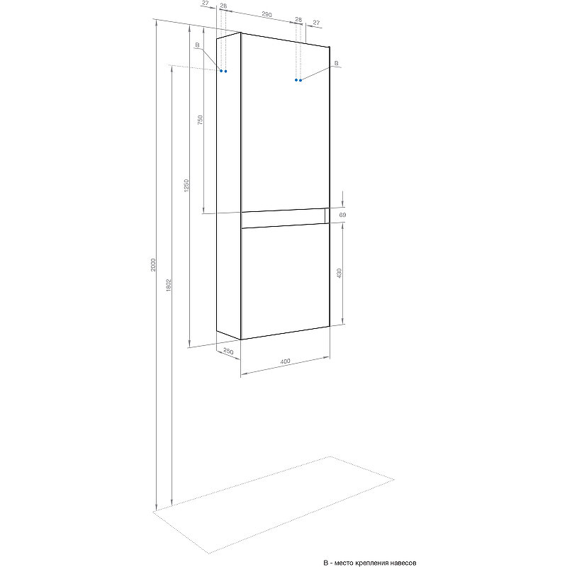 Шкаф колонна подвесная Aquaton Римини new 1A232703RN010