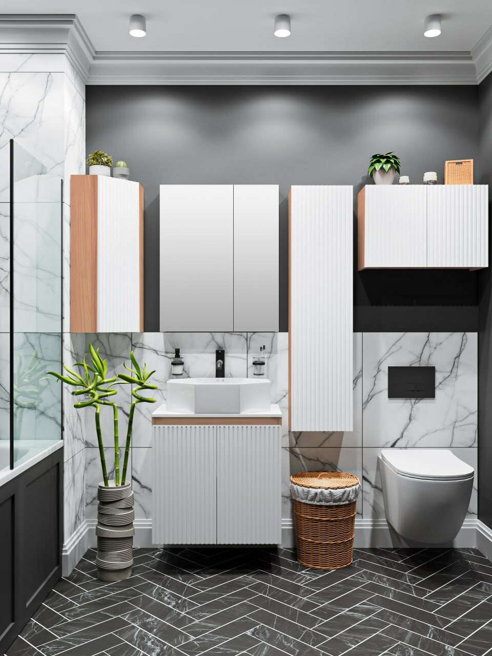 Шкаф навесной Runo Соренто 60х30, универсальный, крафтовый дуб-графит (вертикаль)