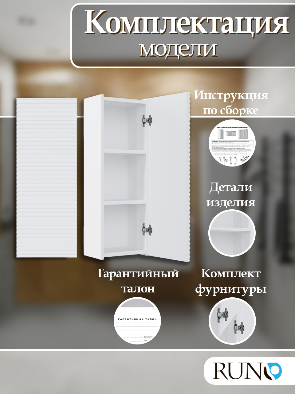 Шкаф навесной Runo Соренто 30, угловой, универсальный, белый матовый (вертикаль)