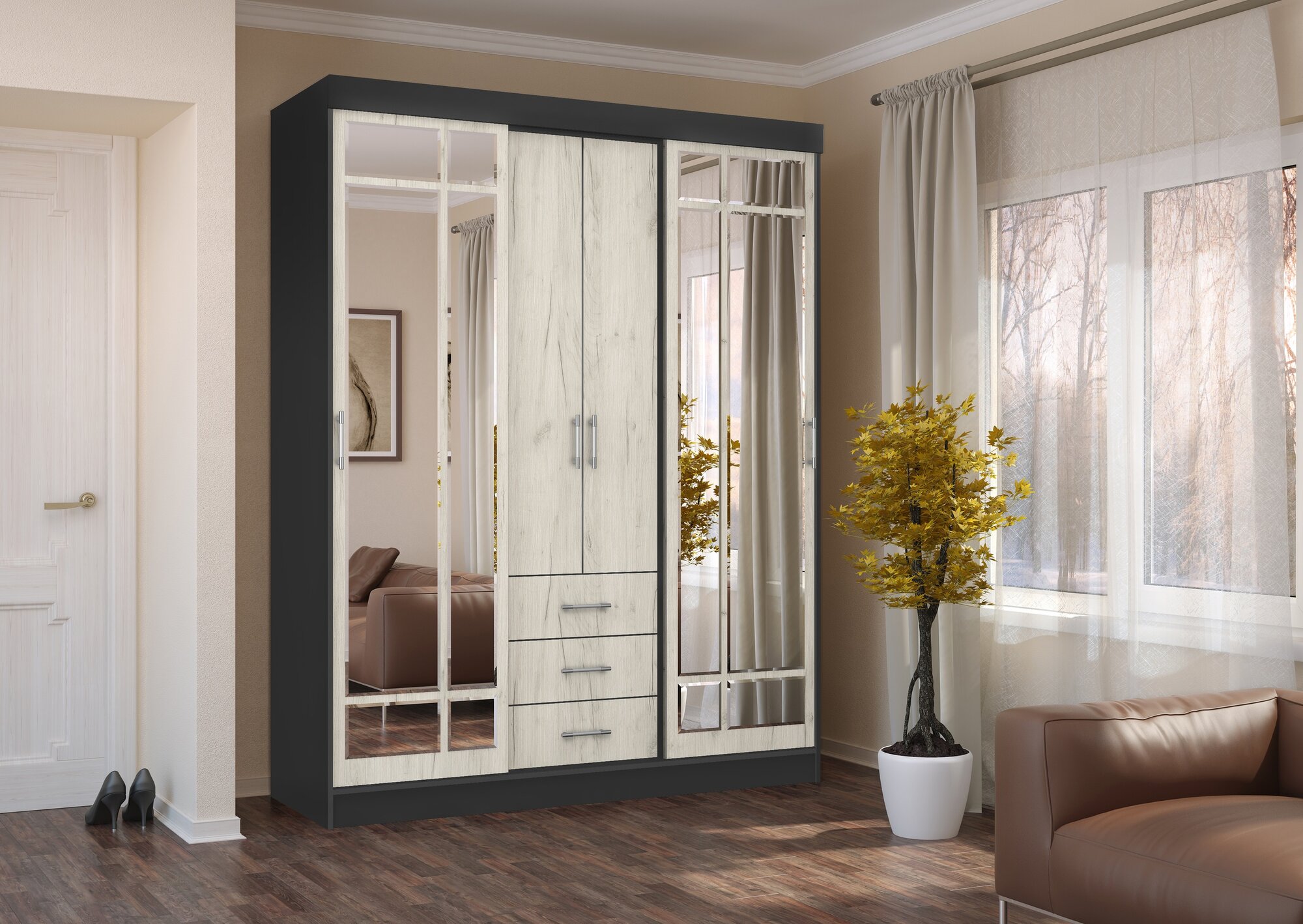 Шкаф-купе Маэстро Графит/Дуб Крафт Белый с ящиками и зеркалом ЛДСП интересное: