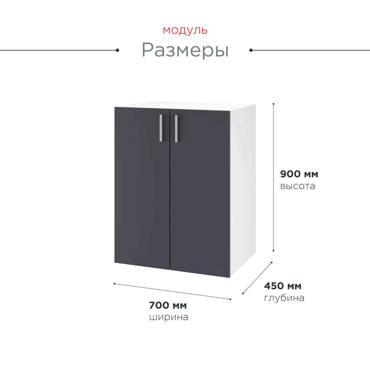 Шкаф для одежды распашной модульный «Twin» 90х45х70; цвет серый; 1 секция