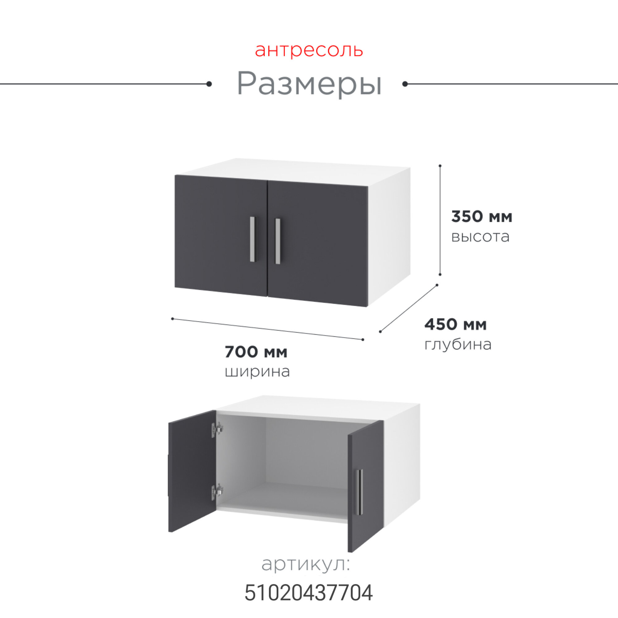 Антресоль для одежды распашная «Twin» 70х45х35; цвет серый; 1 секция