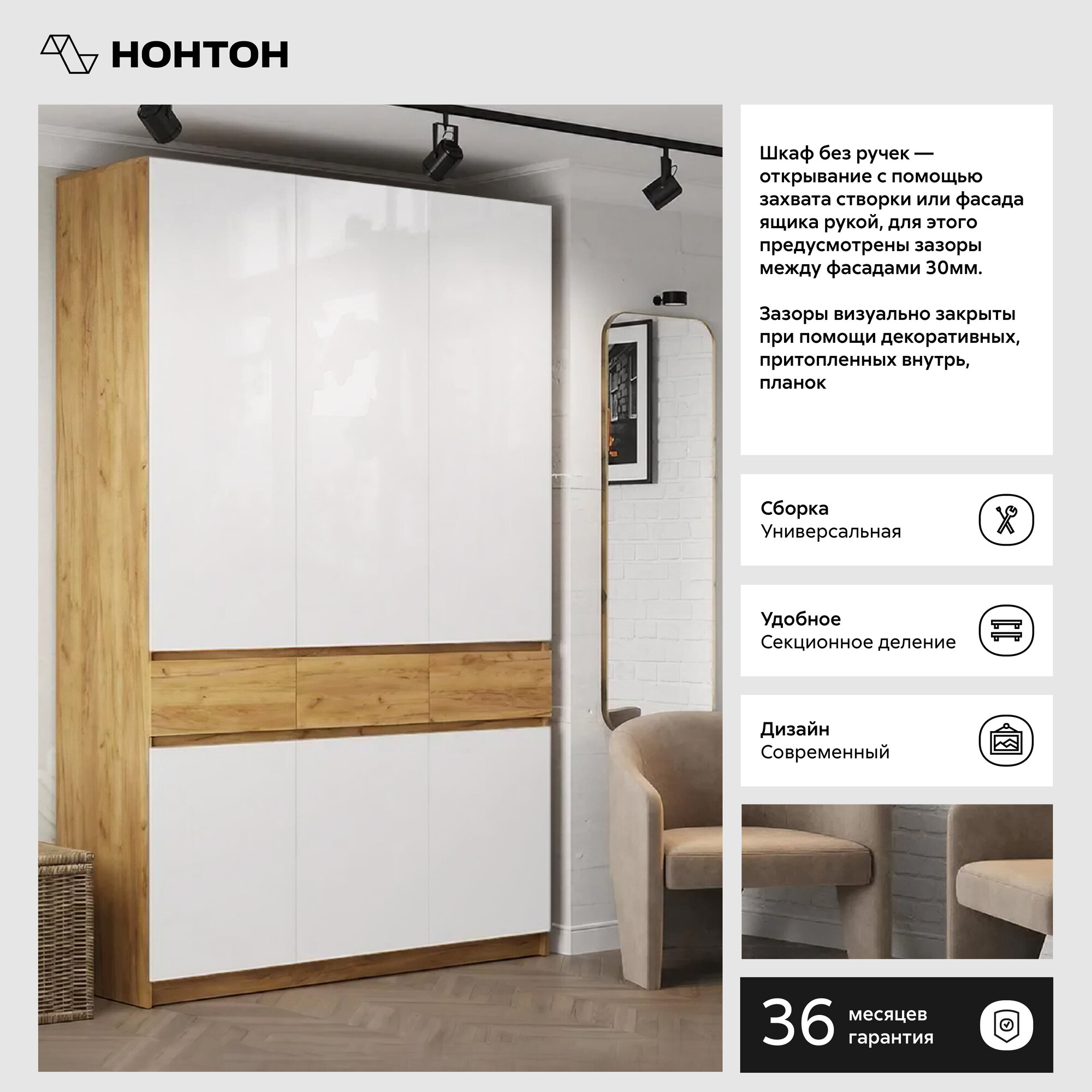 Шкаф для одежды с ящиками Нонтон Бостон, дуб крафт золотой / белый глянец, 150 см интересное: