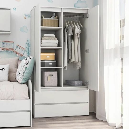 Шкаф для одежды распашной двухдверный, со штангой и полкой, шкаф детский Марм для вещей в скандинавском стиле