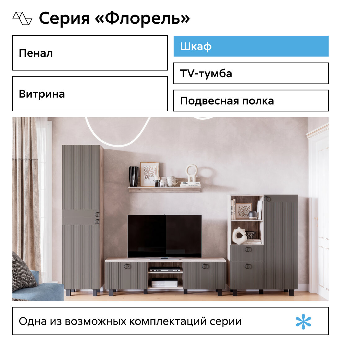 Шкаф для одежды распашной с полками и ящиком Нонтон Флорель дуб смоки / серый 90 см интересное: