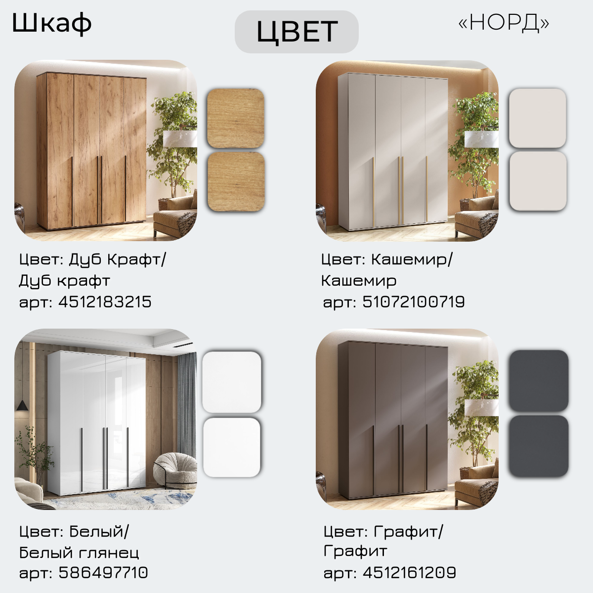 Шкаф распашной для одежды Норд 4-х створчатый Дуб Крафт Белый, 1600х223,6х51 см интересное:
