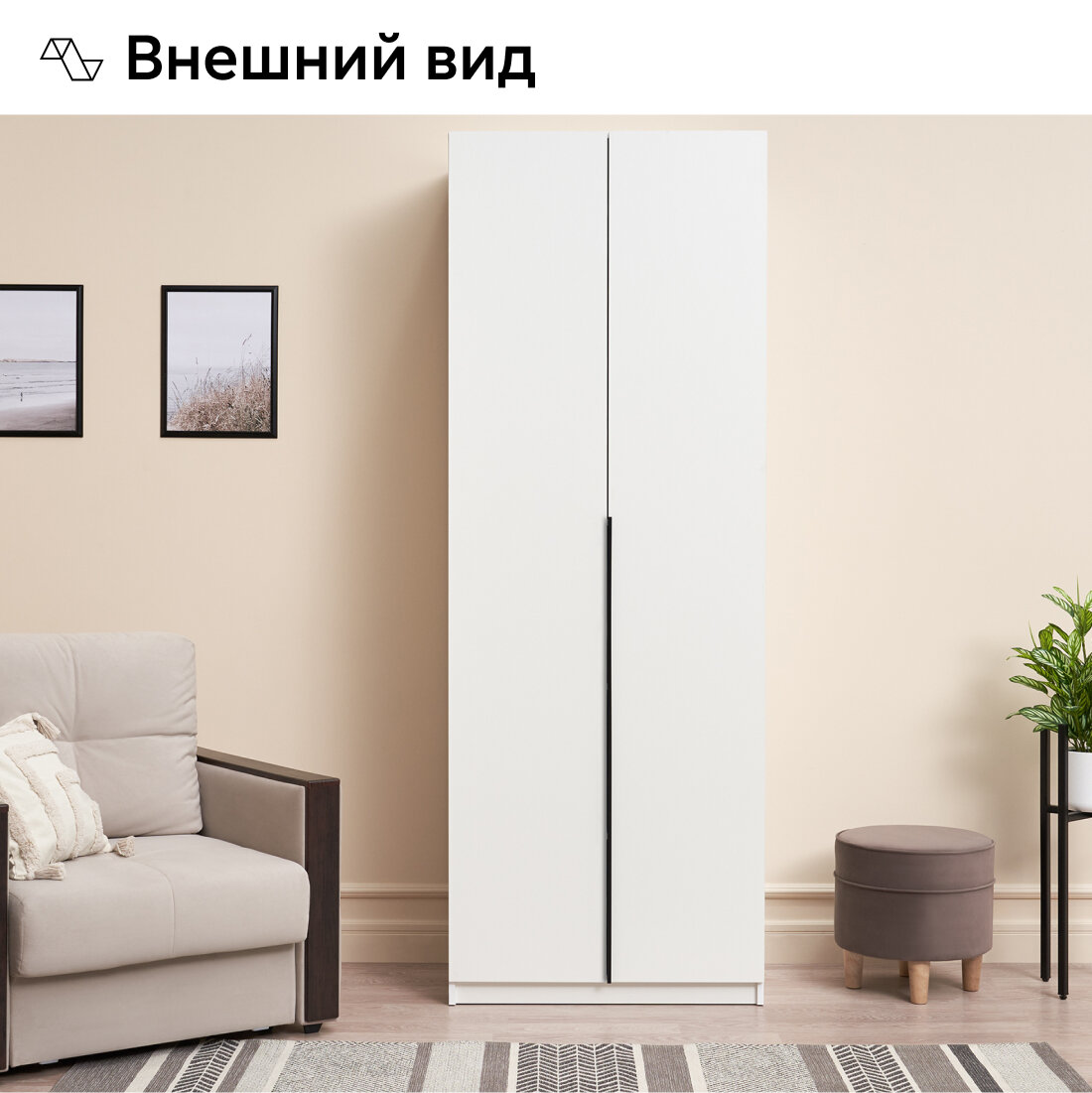Шкаф для одежды распашной Нонтон Луас, 80 см, 1 полка и штанга, белый глянец
