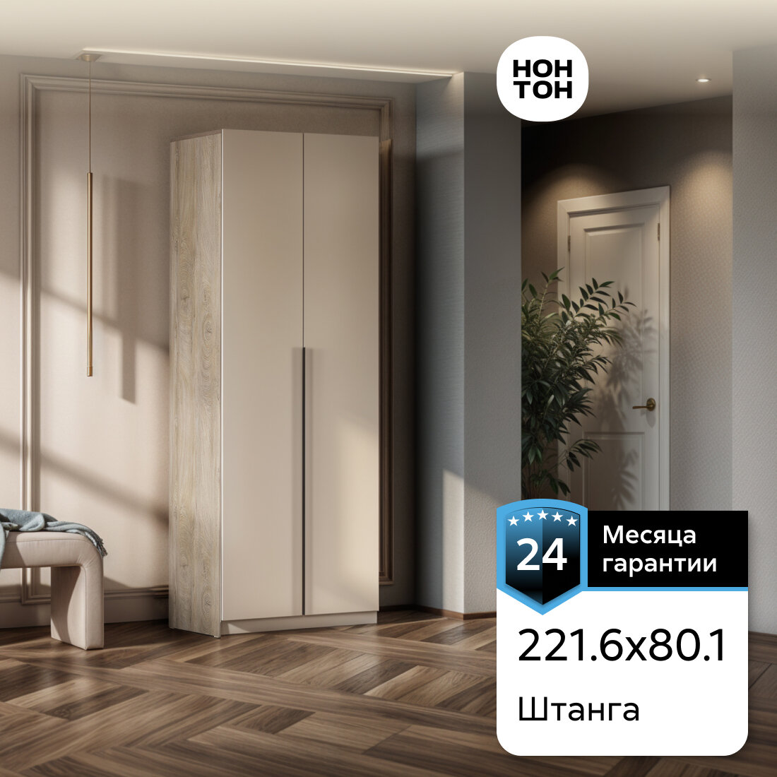 Купить Шкаф для одежды распашной Нонтон Луас, 80 см, 1 полка и штанга, эндгрейн / меланж