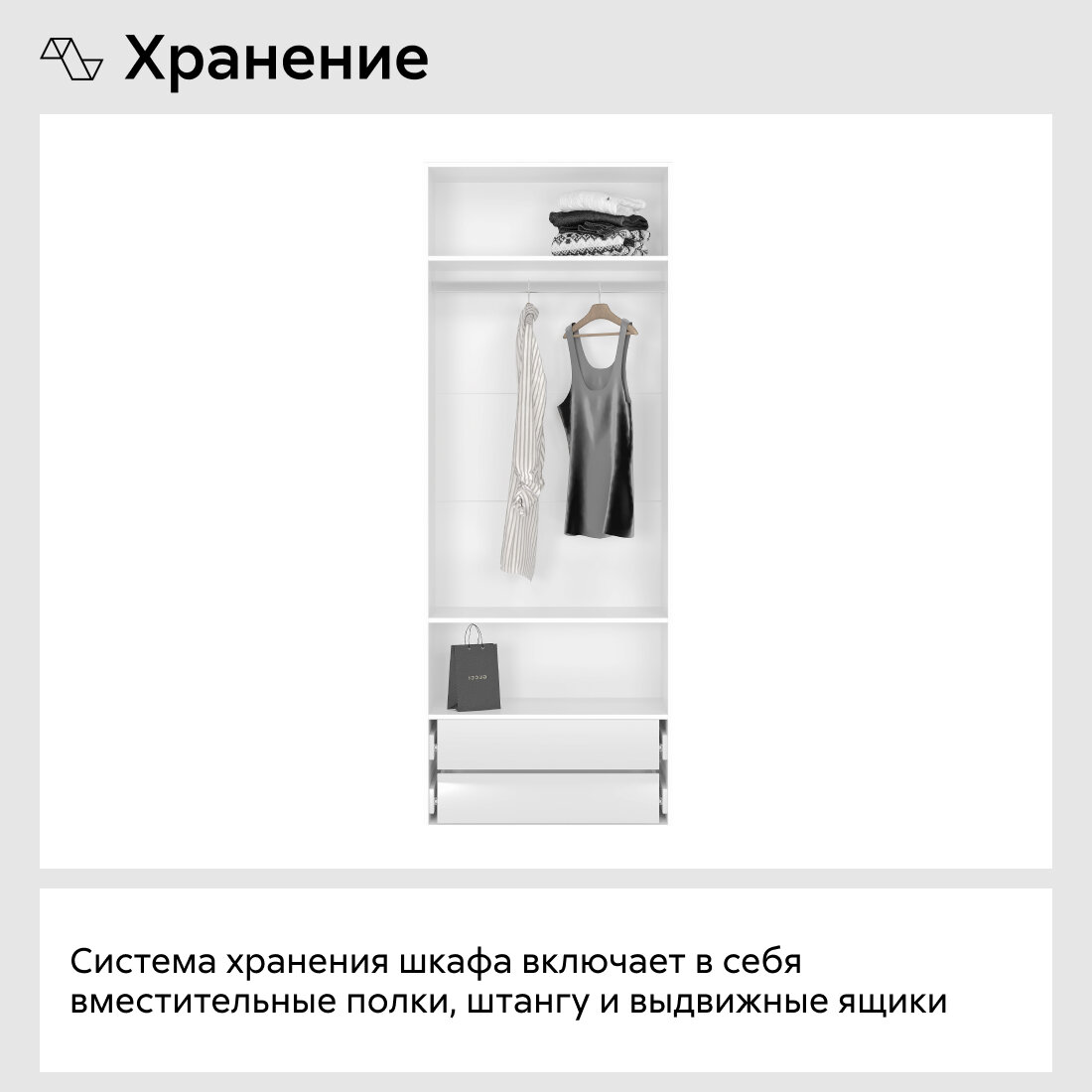 Купить Шкаф для одежды распашной Нонтон Луас, 80 см, 3 полки, 1 штанга, 2 ящика, белый глянец