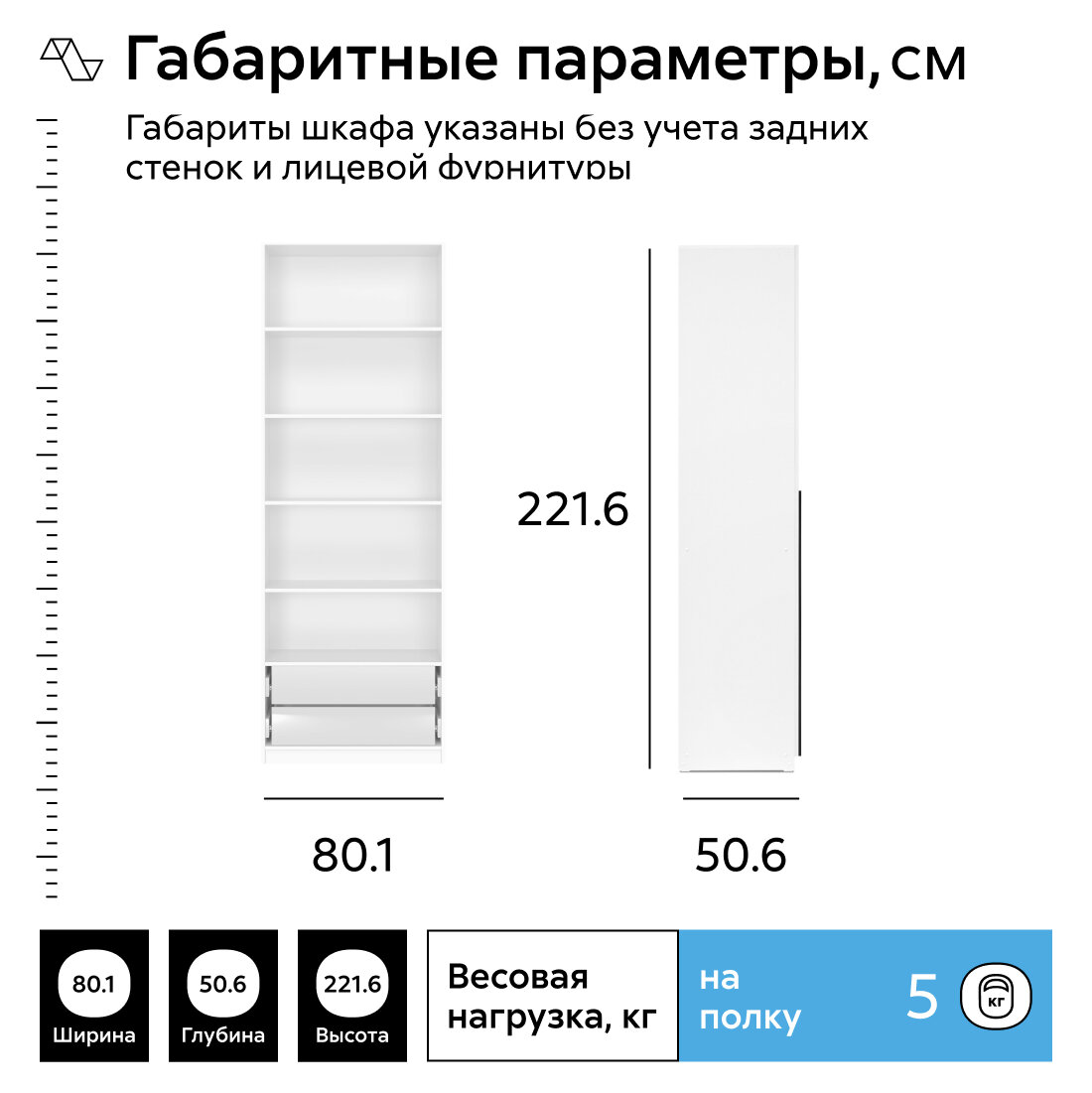 Шкаф для одежды распашной Нонтон Луас, 80 см, 5 полок, белый глянец